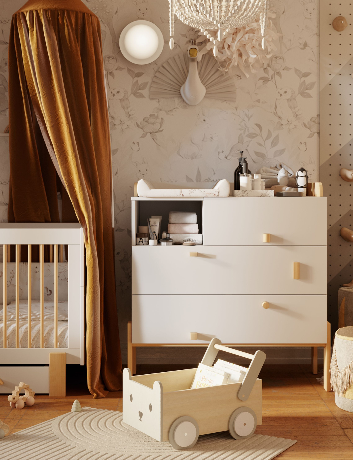 Komoda z kolekcji Cube oferuje dużą pojemność dzięki trzem szufladom. Te przestronne szuflady umożliwiają przechowywanie różnych przedmiotów, takich jak ubrania, akcesoria, pieluchy, zabawki i wiele innych. To nie tylko praktyczne rozwiązanie do przechowywania, ale także funkcjonalny mebel, który ułatwia codzienną opiekę nad maluchem. Dzięki pojemnym szufladom, prowadnicom z hamulcem, opcji dodatkowej nakładki do przewijania oraz kompatybilności z modułami, komoda z kolekcji Cube zapewnia elastyczność, organizację i wygodę w jednym.