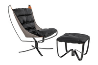 Fotel biurowy LOUNGE BUSINESS czarny z podnóżkiem - sklejka orzech, skóra naturalna, stal polerowana