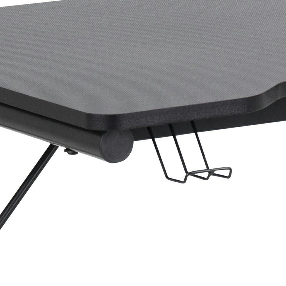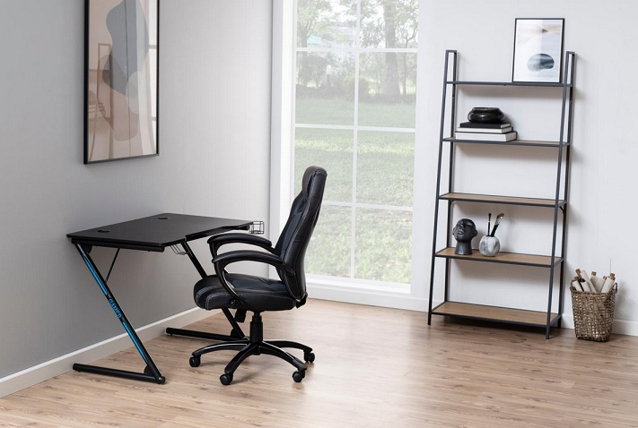 - ACTONA biurko TROOPER jest idealne dla miłośników gier komputerowych o prostym, nowoczesnym kształcie. Wyposażone w uchwyt na kubek i wieszak na słuchawki. Blat wykonany z płyty MDF pokrytej czarnym laminatem oraz metalowej podstawy lakierowanej na czarny