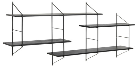- ACTONA półka BELFAST 2 czarna. System półek Belfast to doskonałe rozwiązanie dla osób, które lubią porządek. Metalowa, asymetryczna konstrukcja w kolorze czarnym utrzymuje półki z drewna paulownia, które pomalowano na czarno i dodatkowo zabezpieczono. Pół