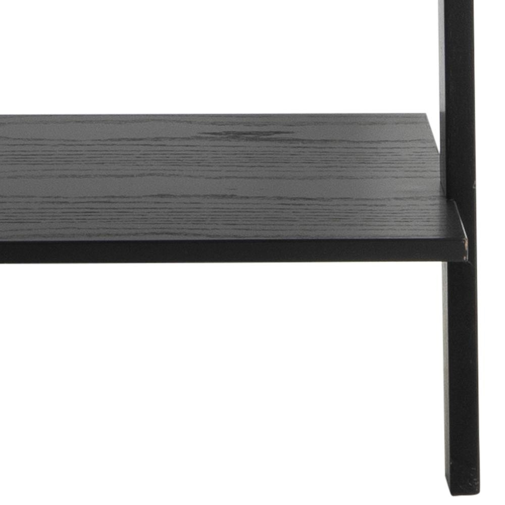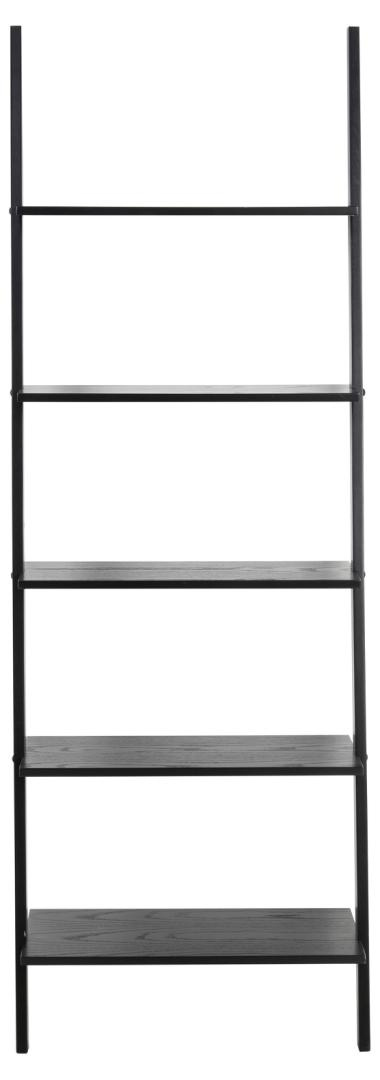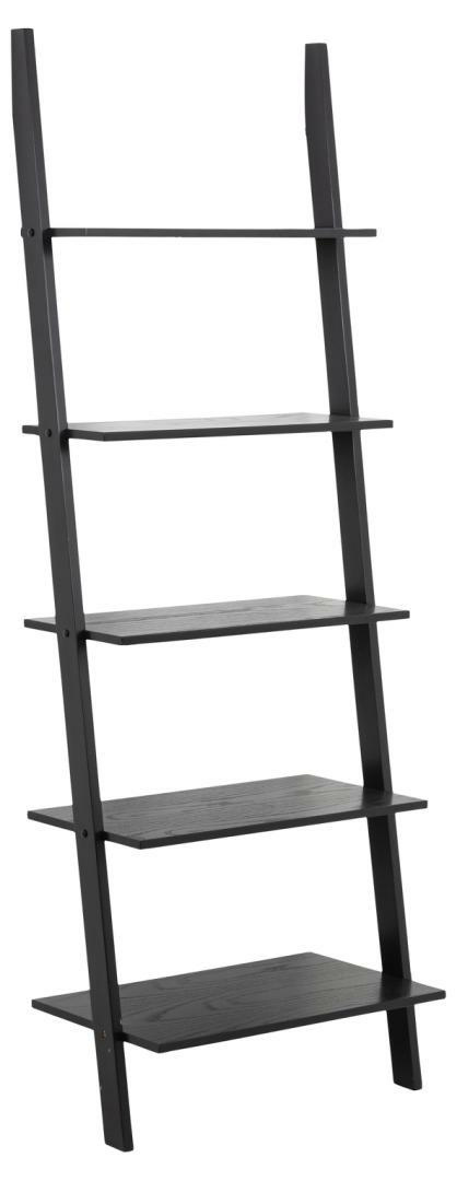 - ACTONA regał WRITEX czarny. Wykonany z drewna kauczukowego lakierowanego na kolor czarny. Pięć półek jest fornirowanych czarnym dębem.. Półka drabinowa, która wprowadzi do każdego pomieszczenia melancholijny nastrój. Posiada 5 pojemnych półek, które wyróż