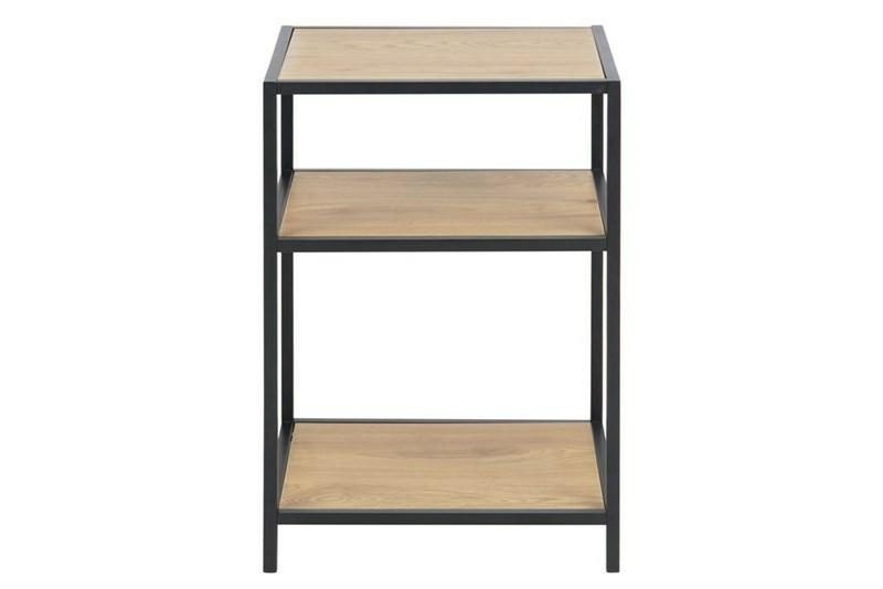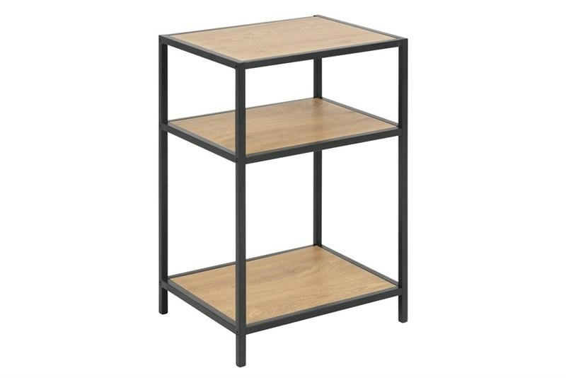 W naszej ofercie dostępne są różne meble z serii Seaford przeznaczone do pomieszczeń o różnym przeznaczeniu i zastosowaniu – tutaj nowoczesny stolik nocny w stylu industrialnym z 3 półkami o wymiarach 42 x 35 cm i całkowitej wysokości 63 cm.
