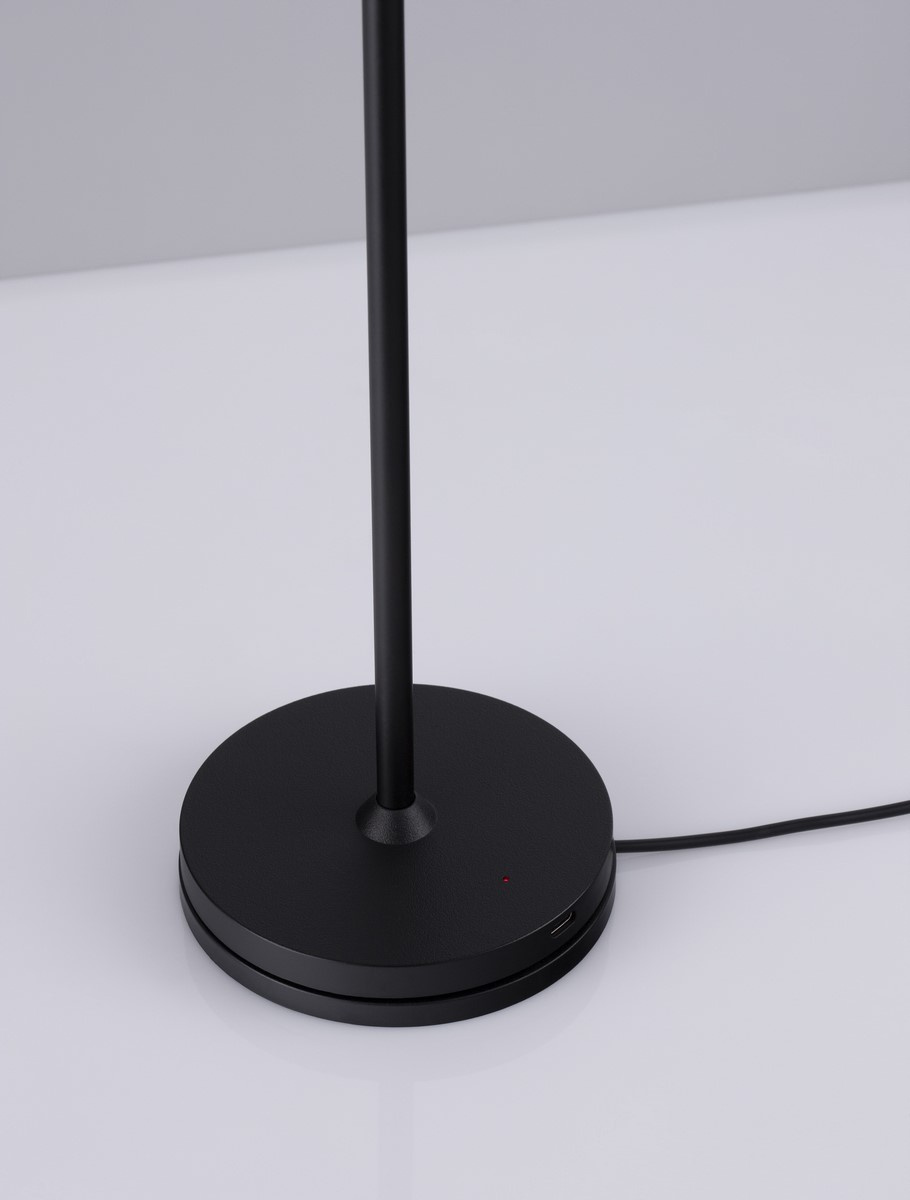 - ADOBES kolor czarny. Przenośna lampa stołowa ładowana za pośrednictwem złącza USB lub bazy.