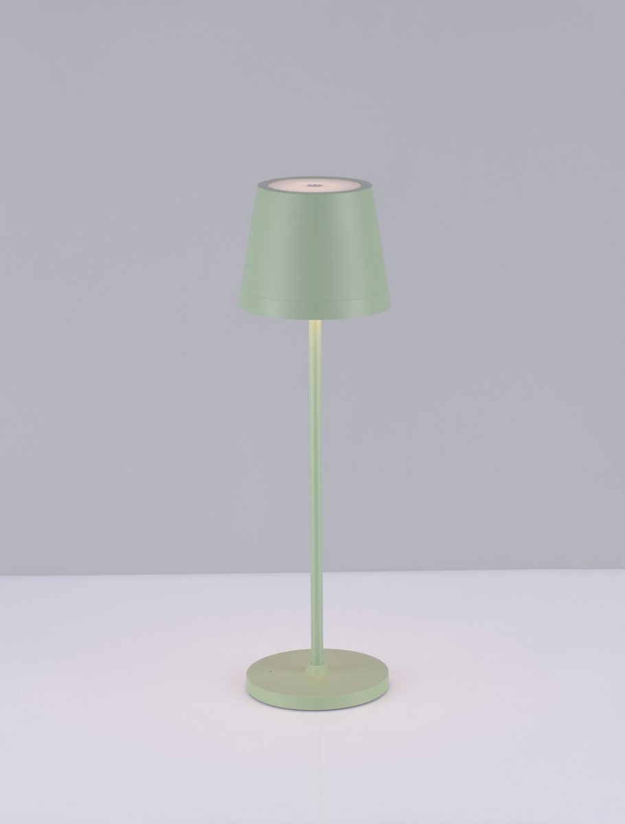 - ADOBES kolor oliwkowy. Przenośna lampa stołowa ładowana za pośrednictwem złącza USB lub bazy.