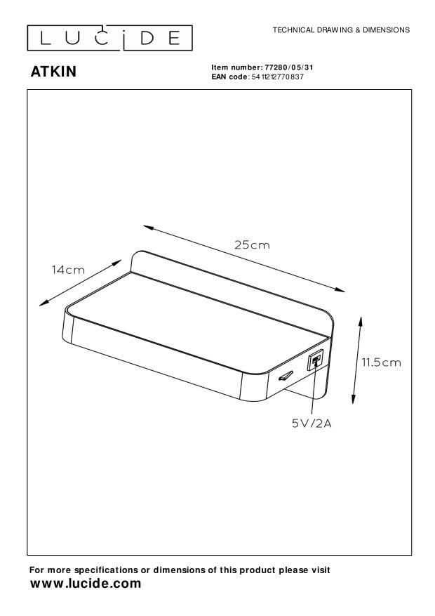 - ATKIN Kolor biały. Możliwość ładowania telefonu przez USB.