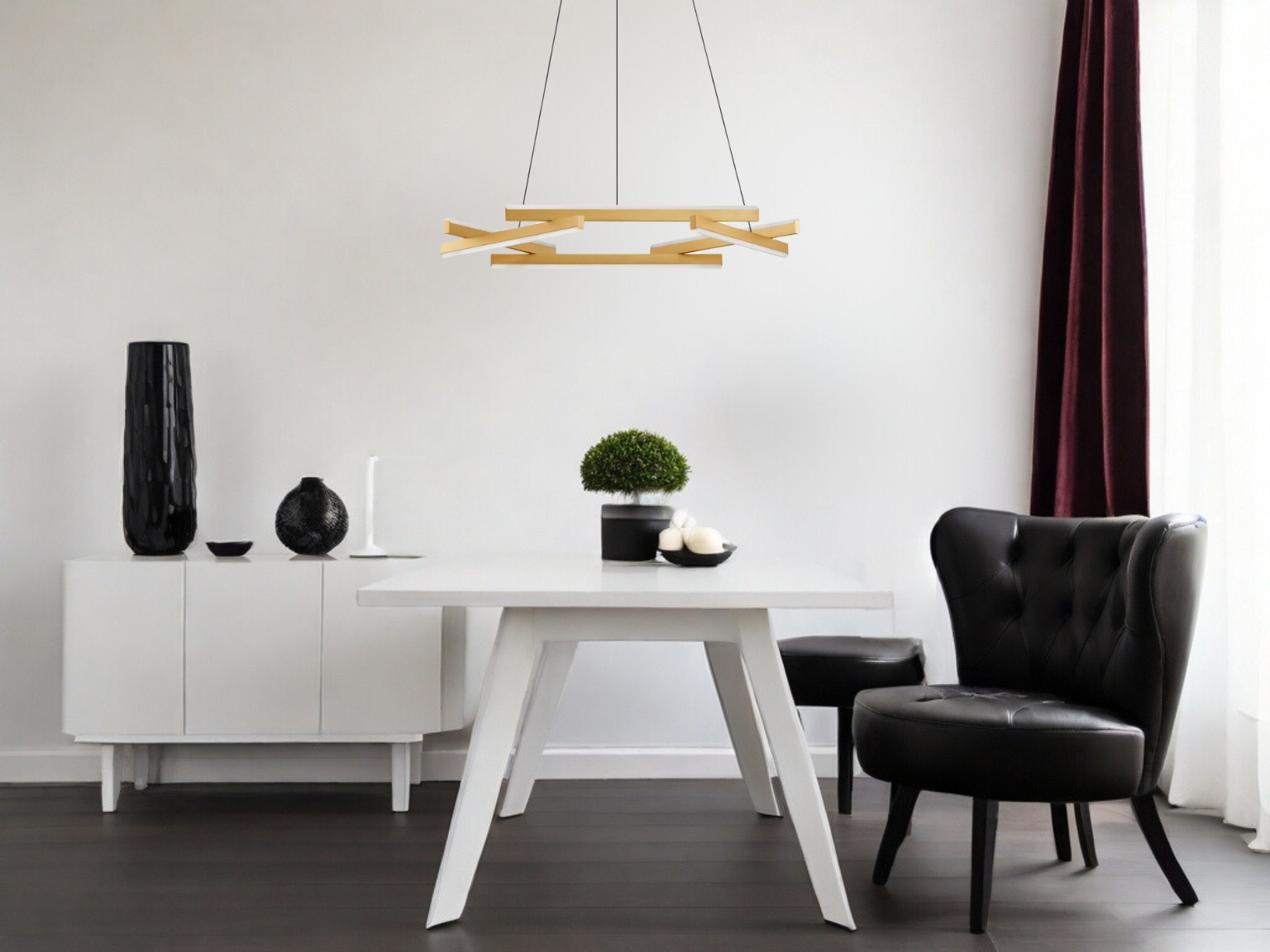 - BALTA od Luces Exclusivas w kolorze szczotkowanego złota. Ściemnialna za pośrednictwem zewnętrznego ściemniacza.