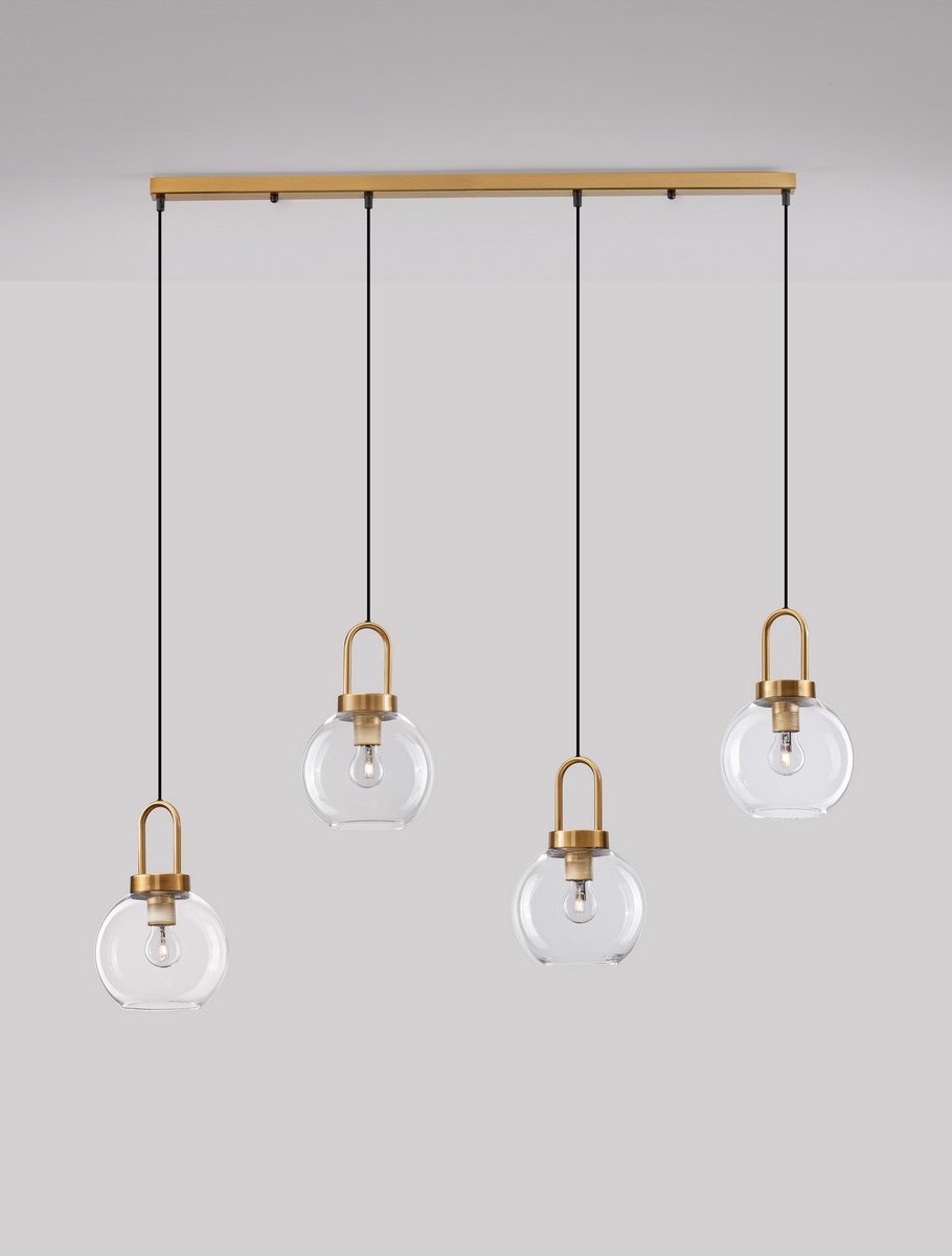 - Niepowtarzalny BANES marki Luces Exclusivas, z mosiężnymi wykończeniami i transparentnymi kloszami idealnie dopełni piękne wnętrze.