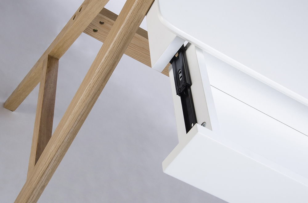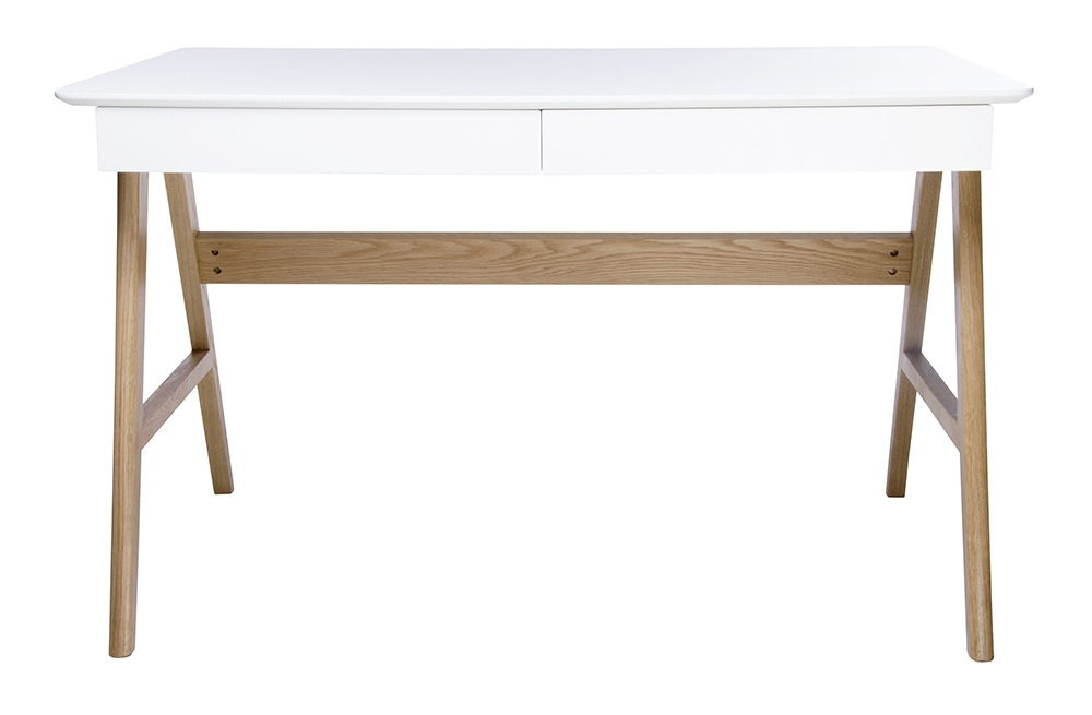 - Biurko Riva. Blat i szuflady wykonane z MDF-u w kolorze białym matowym. Dwie praktyczne szuflady. Nogi wykonane z drewna dębowego. Wymiary: wys. 75 cm / szer. 120 cm / gł. 70 cm Blat: gr 1,8 cm Waga netto: 30 kg Wymiary opakowania: 129 cm / 75 cm / 12 cm