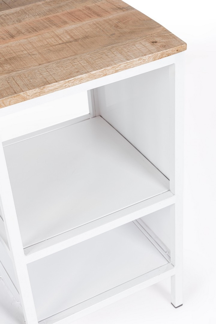 BIZZOTTO barek VESPA niebieski. Imponująca forma harmonijnie łączy niepowtarzalny styl z praktycznym zastosowaniem. Stalowa rama znakomicie komponuje się z blatem z egzotycznego drewna mango. Smukły kształt o unikalnym froncie nawiązującym do sylwetki skutera Vespa, wyposażony w praktyczne półki. Doskonale wpisuje się w aranżacje industrialne, vintage i loftowe, świetnie odnajdując się w salonach, jadalniach oraz nowoczesnych przestrzeniach coworkingowych. Niebieski w połączeniu z białym tworzy harmonijny duet, który wnosi do wnętrza uczucie przestronności. Ze względu na ręczną produkcję oraz wykorzystanie materiałów pochodzących z recyklingu, każdy egzemplarz może nieznacznie różnić się drobnymi detalami, a naturalne pęknięcia należy traktować jako wyjątkowy element. Jeśli chcesz nadać swojemu wnętrzu wyjątkowy charakter – barek Vespa stworzy atmosferę, która zachwyci każdego gościa. Wymiary: wys. 65 cm / szer. 104 cm / gł. 94cm Waga brutto: 34,9 kg.