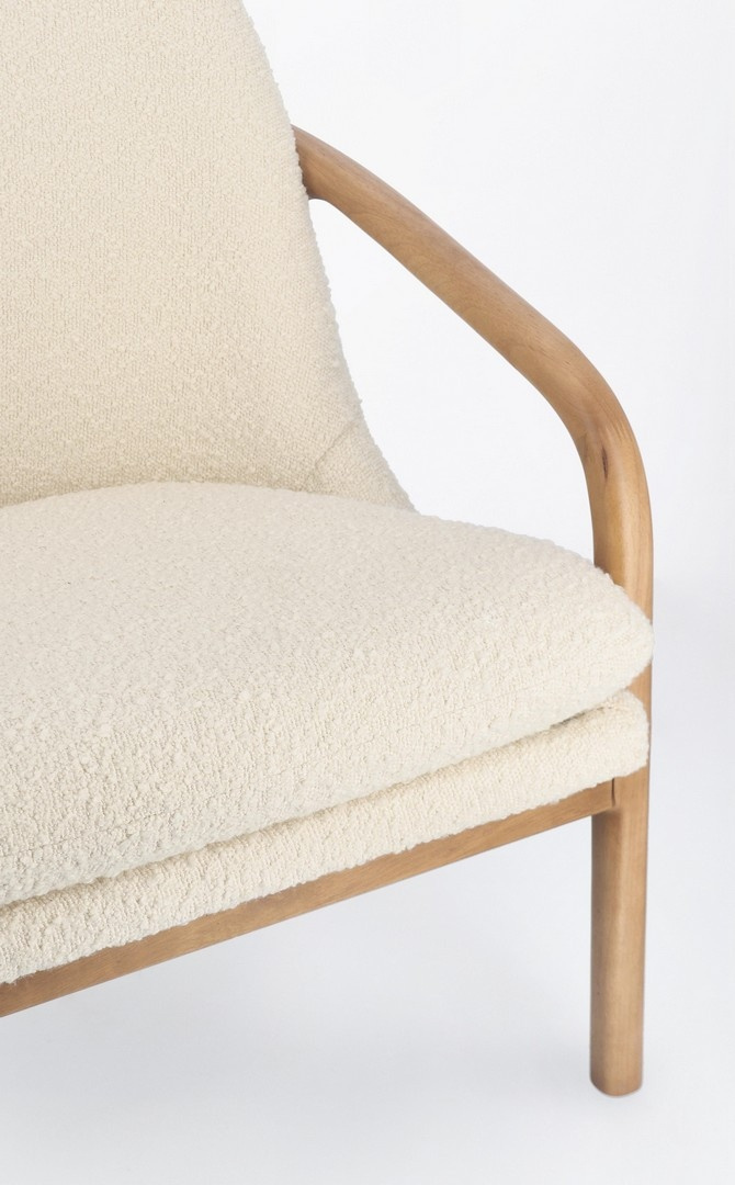 Pokrycie z poliestru o efekcie boucle w delikatnym, białym odcieniu dodaje elegancji i nowoczesnego charakteru.