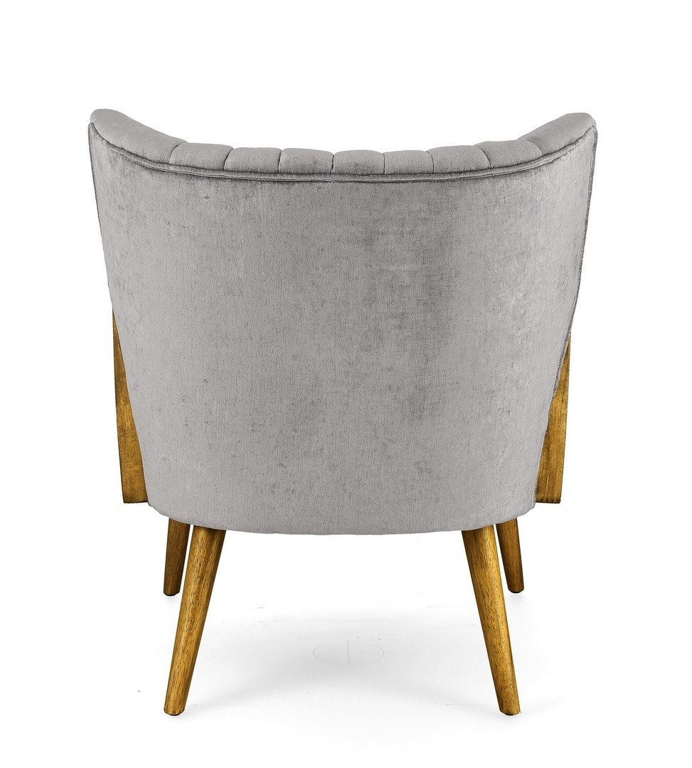 - BIZZOTTO fotel VIRNA szary. Elegancki fotel w stylu vintage, który wprowadza do wnętrza niepowtarzalny urok. Solidna rama z drewna sosnowego i sklejki w połączeniu z podstawą z drewna kauczukowego zapewnia trwałość i stabilność. Podłokietniki z naturalneg