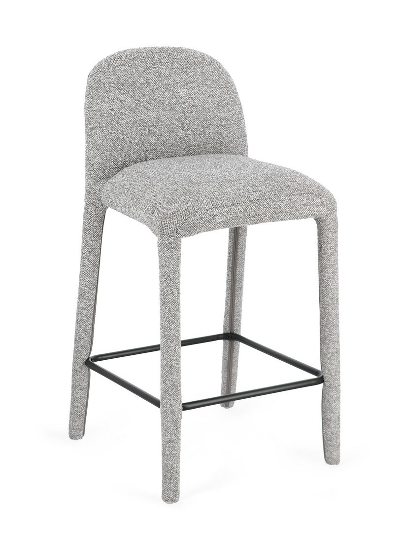 • BIZZOTTO krzesło barowe ANTARA szare. Połączenie elegancji z nowoczesnym designem w modnym wydaniu. Rama i podstawa ze stali oraz siedzisko z wysokiej jakości materiału gwarantują stabilność i elegancję. Wykończenie z dekoracyjną strukturą bouclé, zapewni