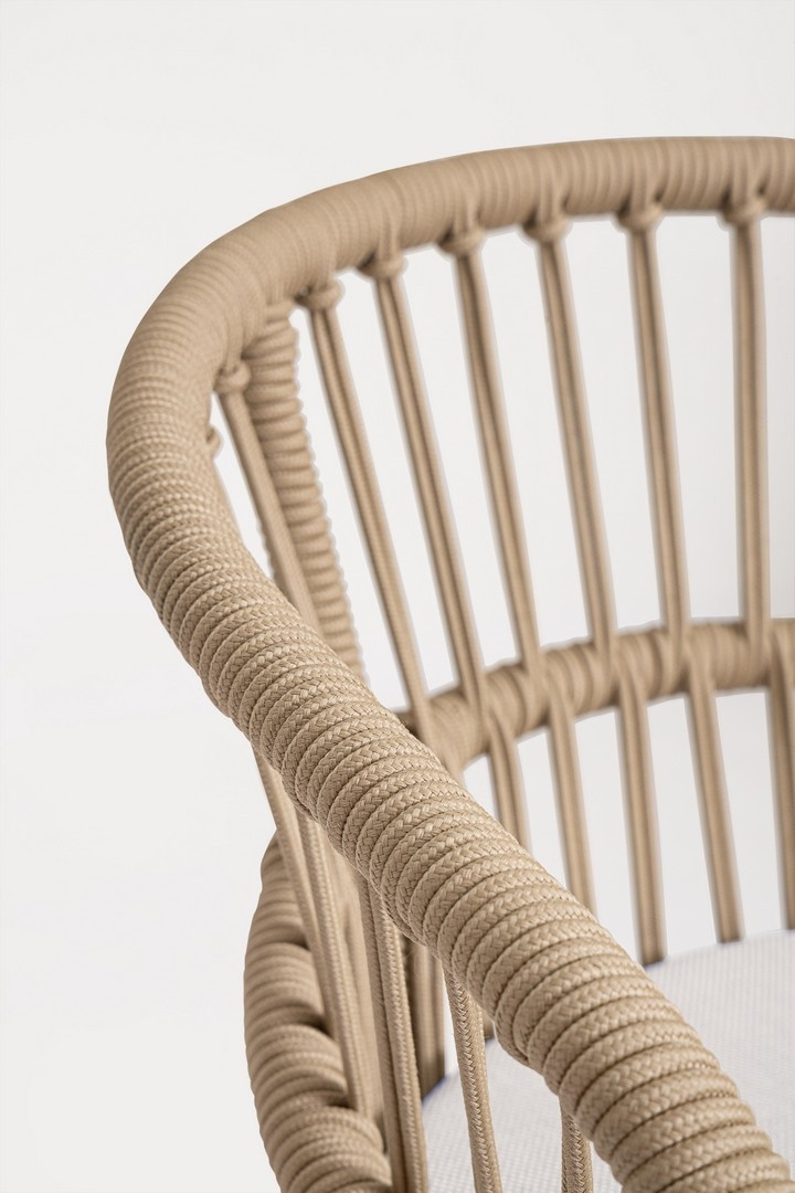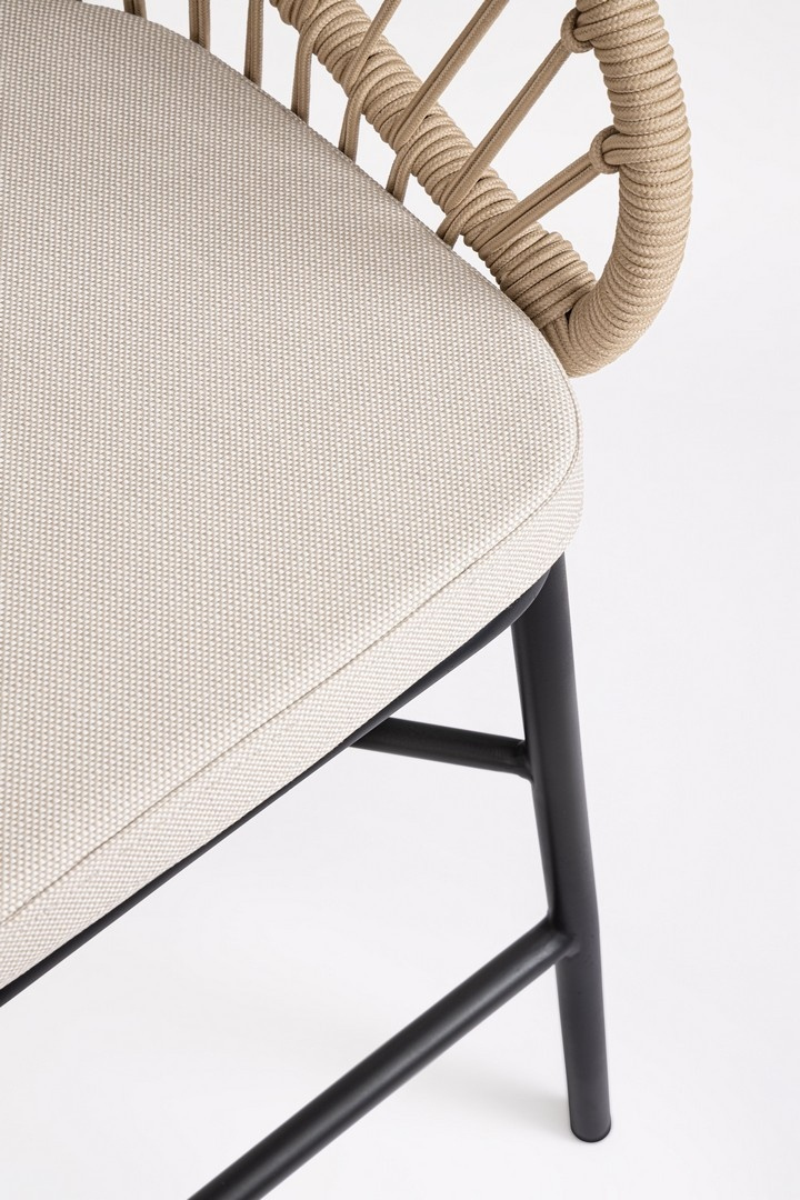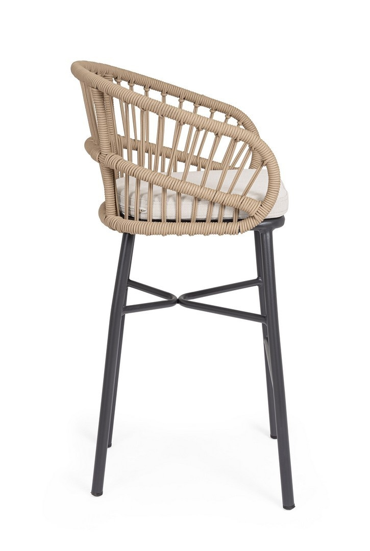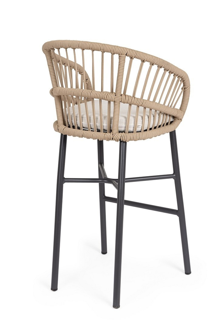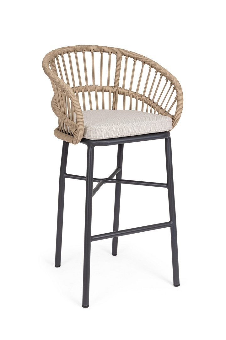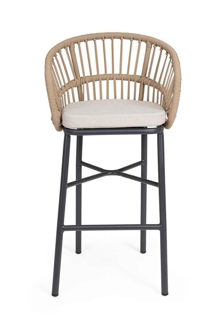 - BIZZOTTO krzesło barowe ogrodowe ODIVELAS beżowe. Harmonia stylu i delikatnych detali wzbogaca aranżacje na świeżym powietrzu. Wykonana z aluminium konstrukcja zapewnia długowieczność i odporność na warunki atmosferyczne. Solidne oparcie z plecionych lin