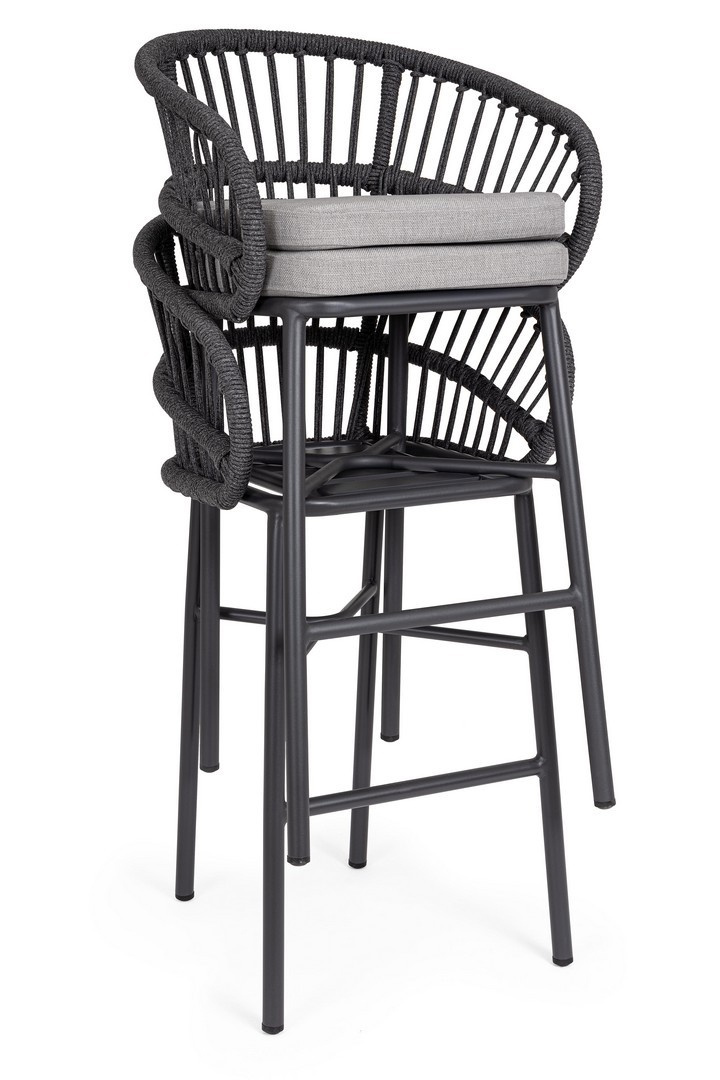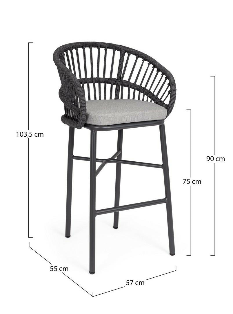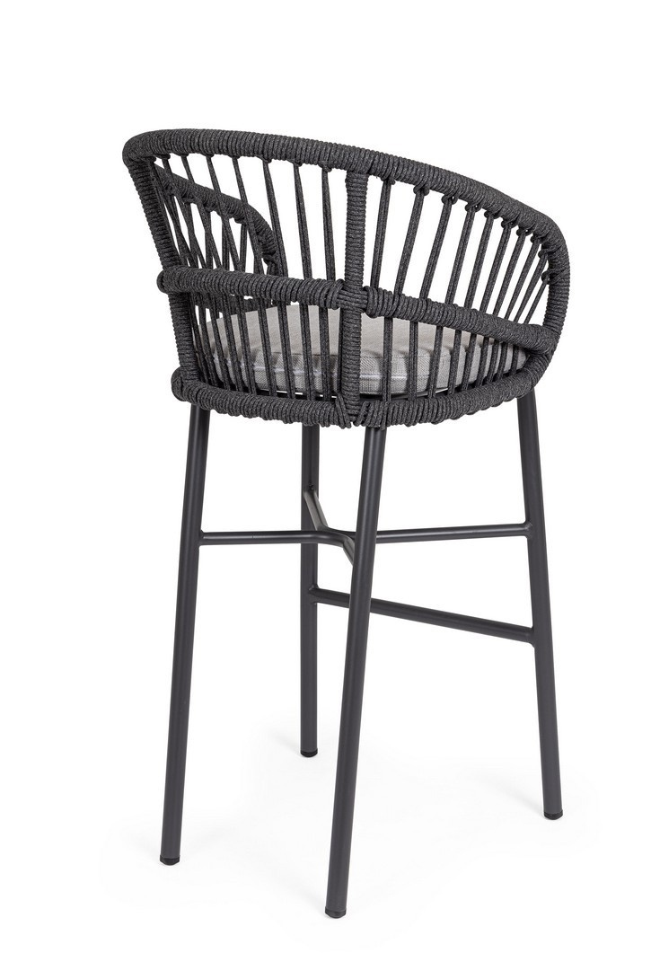 - BIZZOTTO krzesło barowe ogrodowe ODIVELAS czarne. Połączenie stylu i finezji idealnie dopełnia aranżacje na tarasie i w ogrodzie. Wykonana z aluminium konstrukcja zapewnia długowieczność i odporność na warunki atmosferyczne. Wodoodporne liny poliestrowe,