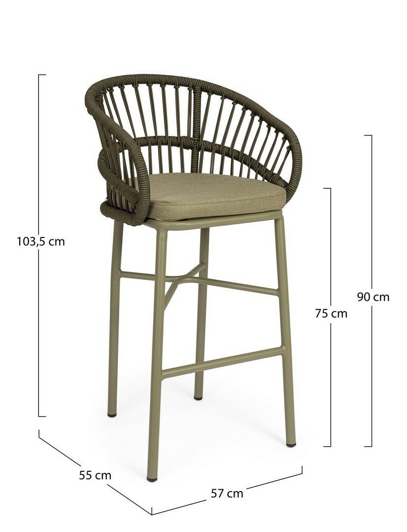 - BIZZOTTO krzesło barowe ogrodowe ODIVELAS zielone. Stylowy design i subtelna elegancja tworzą spójną całość w aranżacjach ogrodowych i tarasowych. Wykonana z aluminium konstrukcja zapewnia długowieczność i odporność na warunki atmosferyczne. Oparcie zosta