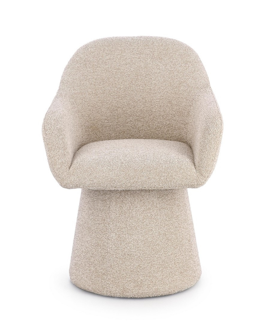 Obicie z eleganckiej tkaniny bouclé wraz z wypełnieniem z miękkiej pianki gwarantuje wygodę i długotrwałą funkcjonalność.