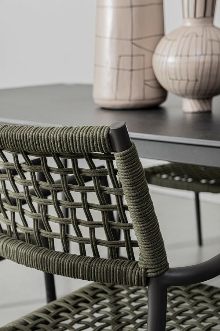 - BIZZOTTO krzesło ogrodowe CALETA czarne / zielone. Subtelna elegancja i nowoczesny design to idealne rozwiązanie do aranżacji przestrzeni na świeżym powietrzu. Wykonana z aluminium konstrukcja zapewnia długowieczność i odporność na warunki atmosferyczne.