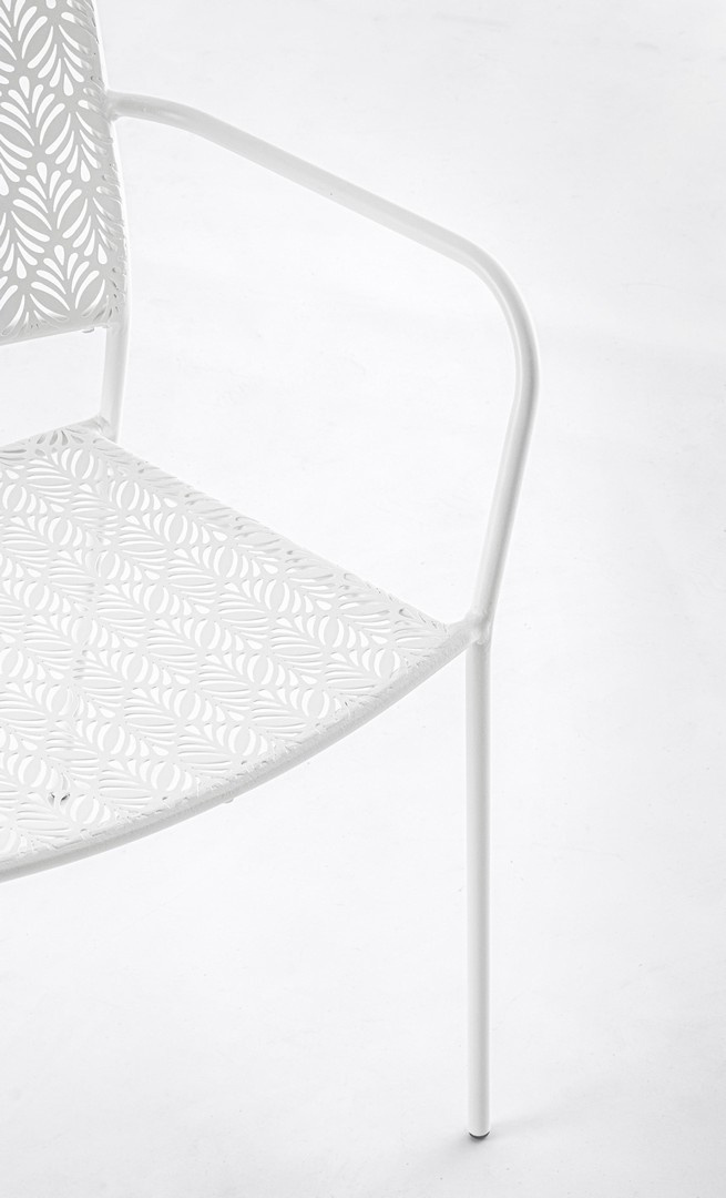 Ażurowy wzór nadaje krzesłu subtelnej lekkości i niepowtarzalnego stylu, precyzyjnie wycięte detale nie tylko pełnią funkcję dekoracyjną, ale także poprawiają wentylację, co przekłada się na większy komfort podczas użytkowania.