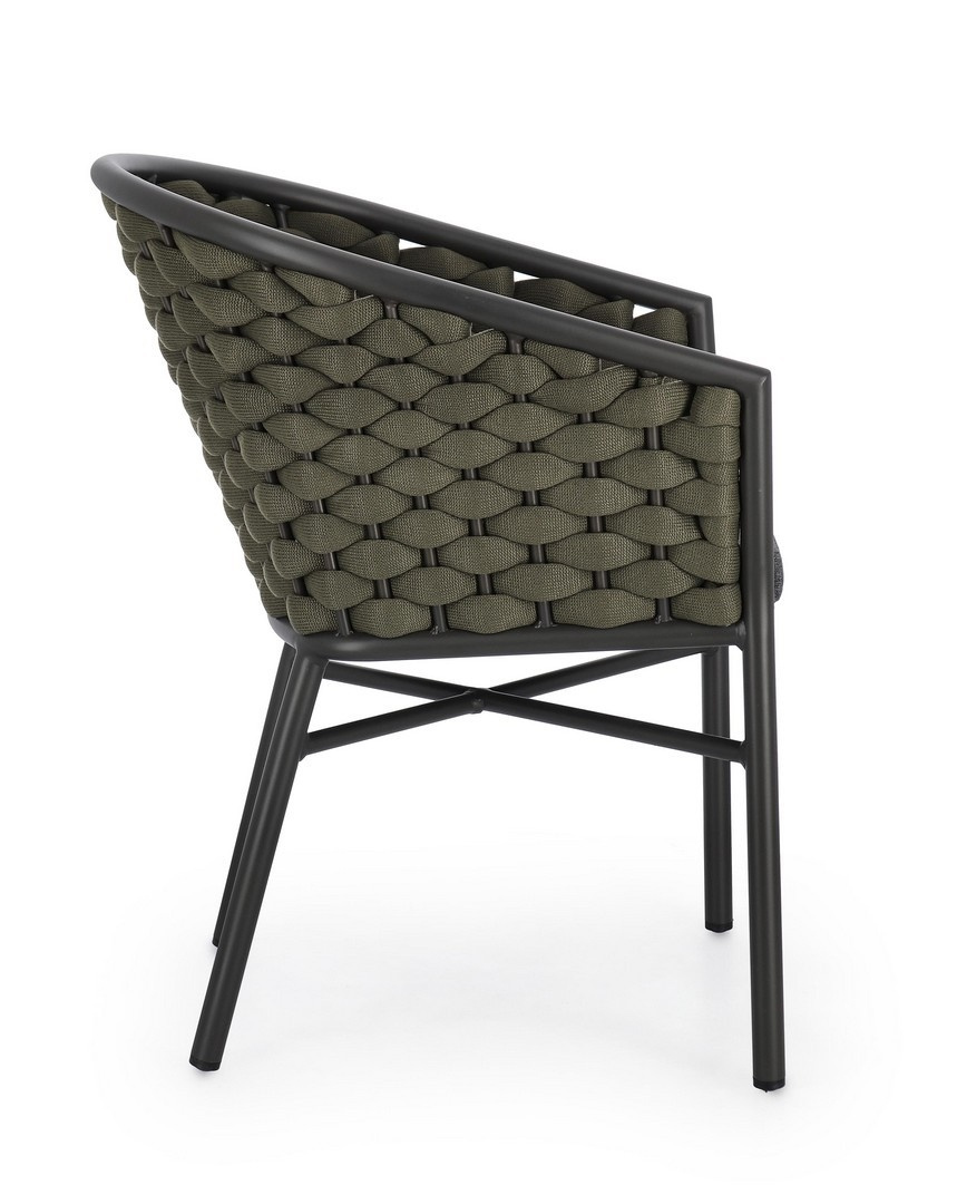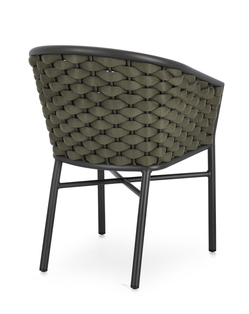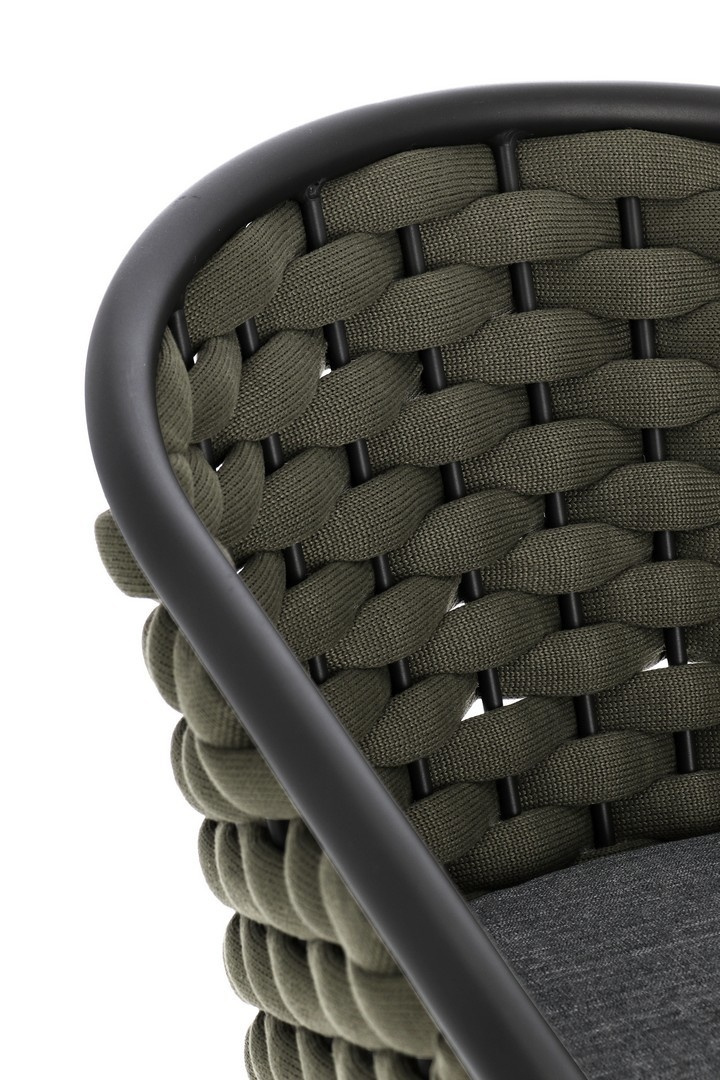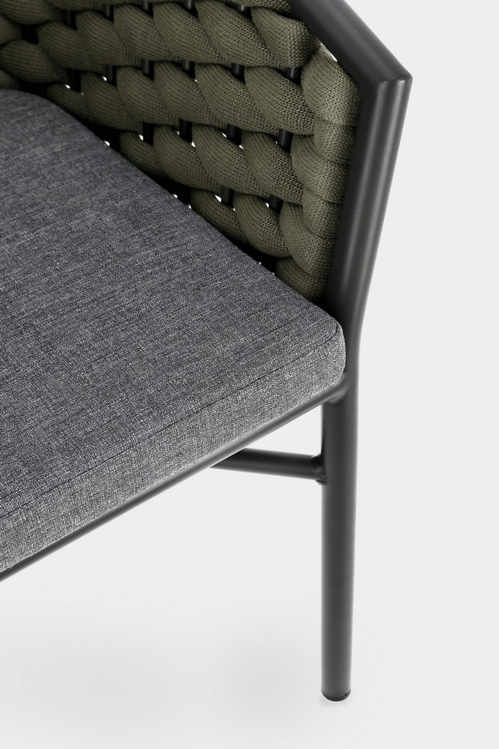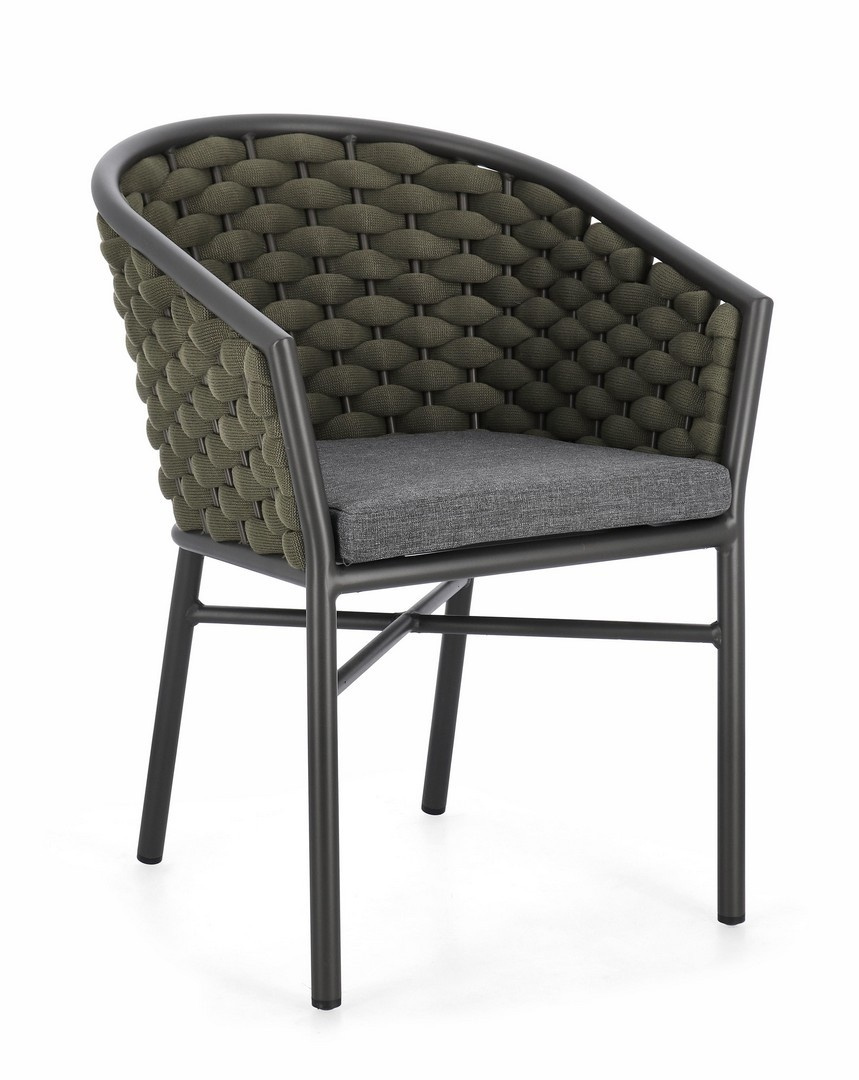 BIZZOTTO krzesło ogrodowe MARGALIDA szare / zielone. Połączenie elegancji i wygody, stworzone z myślą o przestrzeniach wewnętrznych i zewnętrznych. Aluminiowa konstrukcja zapewnia wytrzymałość i odporność na zmienne warunki pogodowe. Siedzisko i oparcie zostały wykonane z plecionych, wodoodpornych lin poliestrowych, które gwarantują komfort oraz stylowy wygląd. Dopełnieniem są zdejmowane poduszki z wysokiej jakości poliestru, które są odporne na wilgoć i łatwe w utrzymaniu. Praktyczna możliwość sztaplowania ułatwia przechowywanie, a ergonomiczne podłokietniki podnoszą komfort użytkowania. Połączenie szarości z zielenią nadaje krzesłu nowoczesny, a zarazem naturalny charakter, idealnie wpisujący się w aranżacje inspirowane naturą. Połączenie stylu i komfortu, krzesło Margalida odpowiada na potrzeby najbardziej wymagających użytkowników. Wymiary: wys. 80 cm / szer. 57 cm / gł. 61 cm Waga brutto: 5,75 kg.