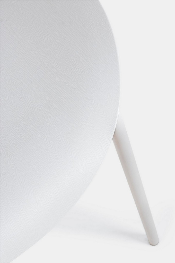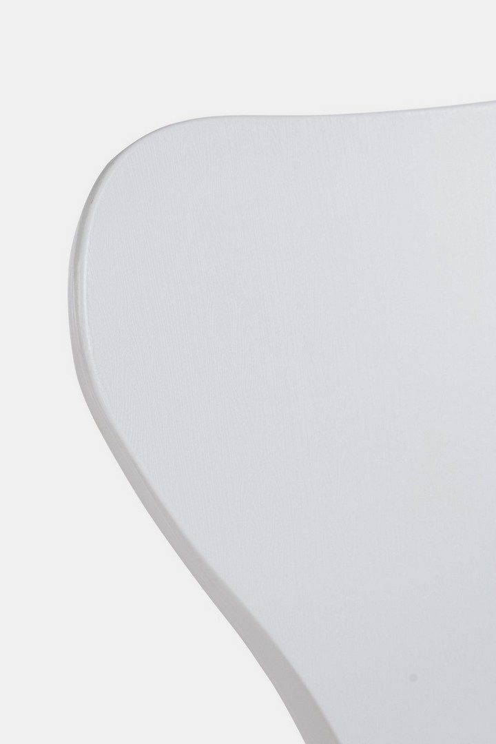 Krzesło charakteryzuje się lekką, opływową formą z delikatnie zaokrąglonym oparciem, które zapewnia odpowiednie podparcie pleców.