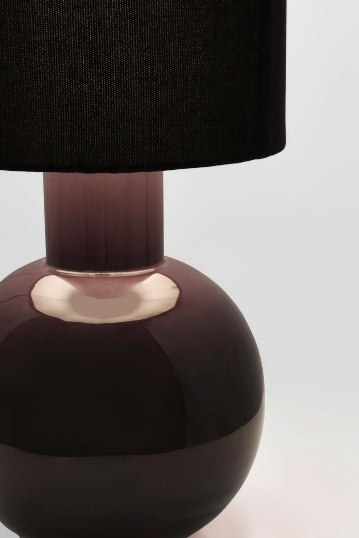 Smukła, cylindryczna podstawa ze stożkowym kloszem tworzy nowoczesną, geometryczną kompozycję.