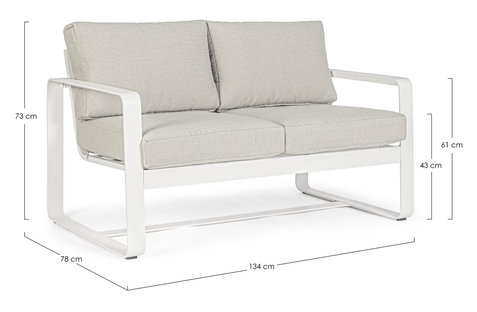 - BIZZOTTO sofa 2-osobowa ogrodowa MERRIGAN beżowa. Stylowa i współczesna kanapa, która wprowadzi niepowtarzalny klimat do Twojego ogrodu lub tarasu. Wykonana jest z aluminium, które zapewnia wyjątkową trwałość i stabilność, dzięki czemu utrzymuje swój eleg