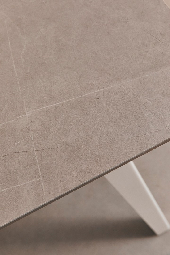 • BIZZOTTO stół jadalniany ARJETA 140x80 biały. Połączenie współczesnego designu z praktyczną formą. Blat z porcelanowego gresu o marmurowym efekcie łączy wytrzymałość z eleganckim, naturalnym wyglądem. Podstawa wykonana jest ze stali pokrytej trwałą powłok