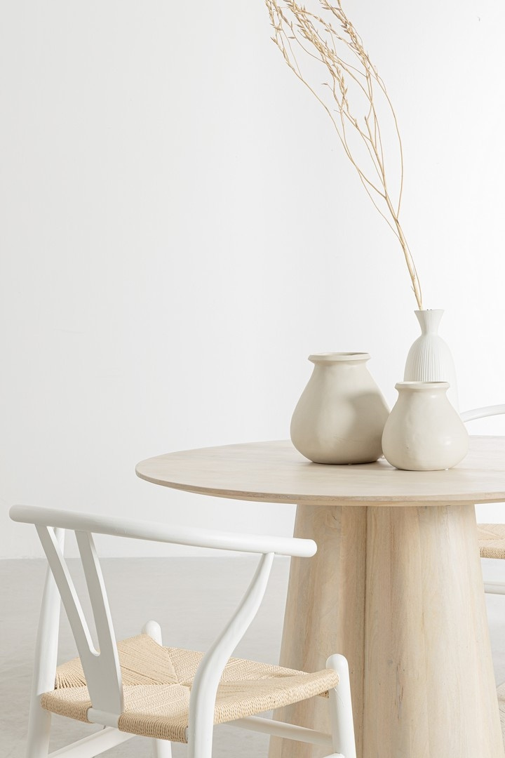- BIZZOTTO stół jadalniany NASSOR 120 beżowy. Nowoczesny, industrialny design, który harmonijnie łączy atrakcyjny wygląd z praktycznym zastosowaniem. Wykonany z wysokiej jakości drewna mango, które nadaje naturalny urok i trwałość. Okrągły blat wsparty na s