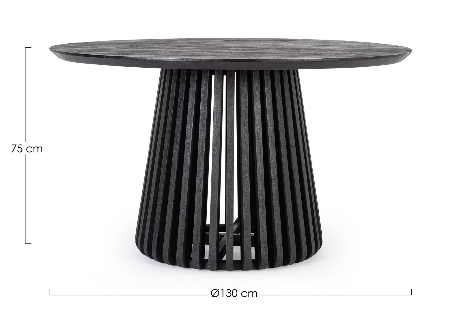 - BIZZOTTO stół jadalniany ODION 130 czarny. Stół charakteryzuje się nowoczesnym, industrialnym stylem, łączącym estetykę z praktycznym zastosowaniem. Został wykonany z drewna mango i pokryty lakierem, który wydobywa jego naturalną strukturę i zapewnia trwa