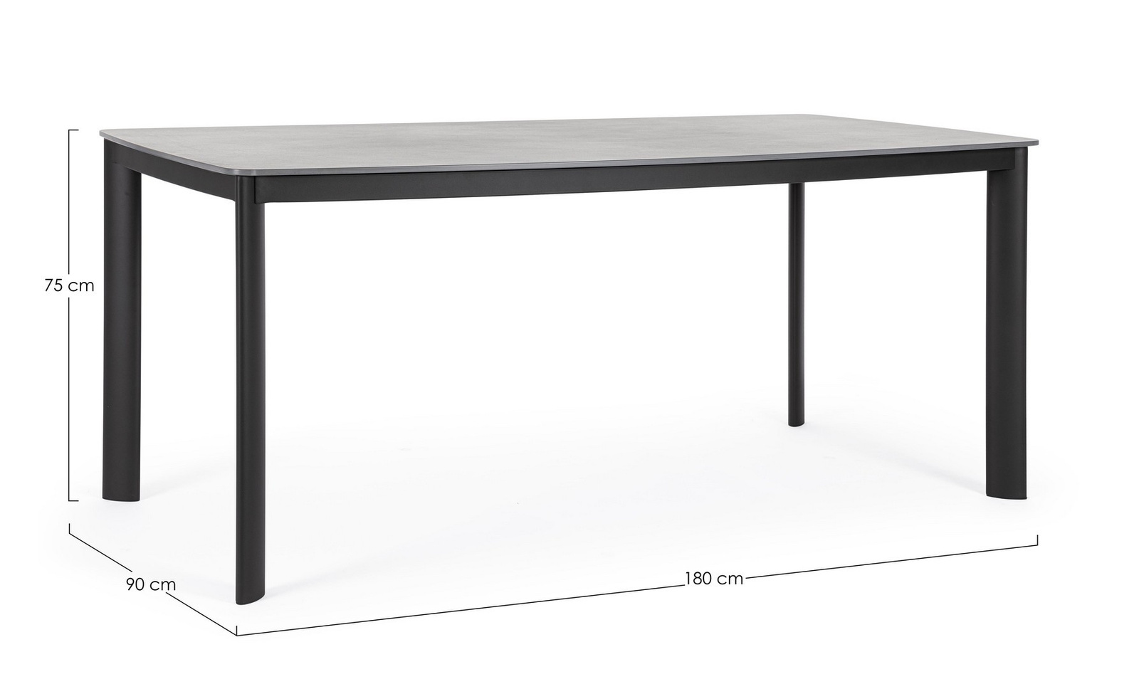 - BIZZOTTO stół ogrodowy ALCORA 180 szary. Połączenie elegancji i praktyczności, idealny stół na świeże powietrze w nowoczesnym stylu. Blat z naturalnego kamienia spiekanego o grubości 11 mm – trwały, szlachetny i zachwycający subtelnym blaskiem. To materia