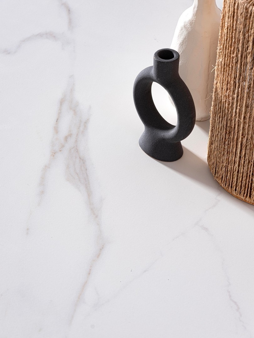 Gres porcelanowy z efektem matowego białego marmuru łączy elegancję naturalnego kamienia z nowoczesnym, subtelnym wykończeniem i wysoką trwałością.