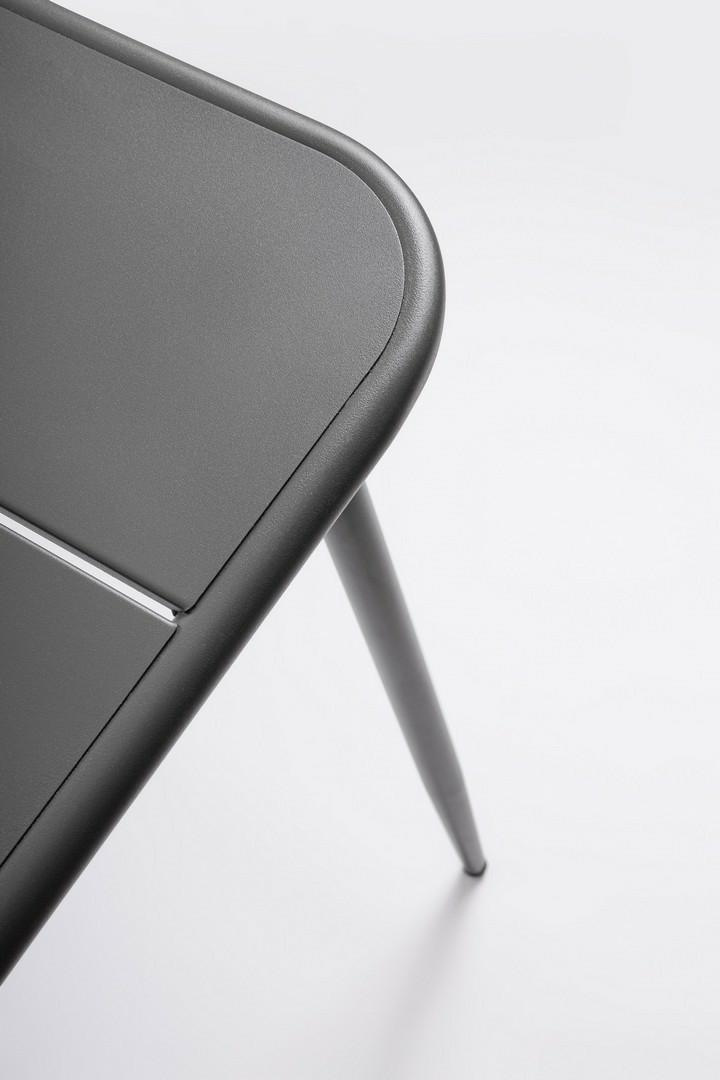 Stylowy i solidny stół ze stali malowanej proszkowo, odpornej na deszcz, słońce i upływ czasu, idealnie sprawdzi się w ogrodzie, na tarasie lub balkonie.
