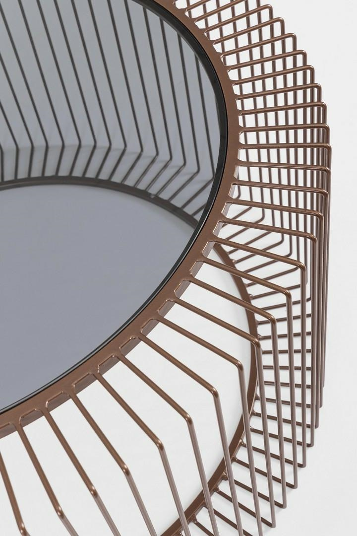 - BIZZOTTO stolik kawowy KIERAN COIN 80. Łączy w sobie nowoczesny design z wyrafinowaną stylistyką. Rama stolika wykonana jest z metalu, co zapewnia trwałość i stabilność. Posiada okrągły blat ze szkła hartowanego osadzonego na lekkiej, ażurowej podstawie.