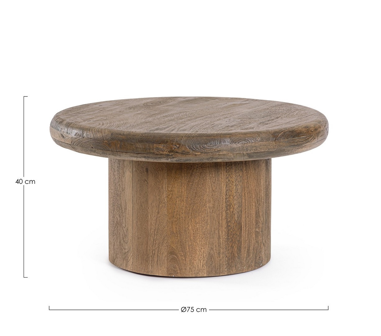 - BIZZOTTO stolik kawowy LOPEZ 75 brązowy. Połączenie naturalnej estetyki z nowoczesnym wzornictwem. Wykonany z litego drewna mango, pokryty trwałą powłoką, która podkreśla naturalny rysunek słojów i nadaje mu elegancki, ciepły charakter. Okrągły blat osadz