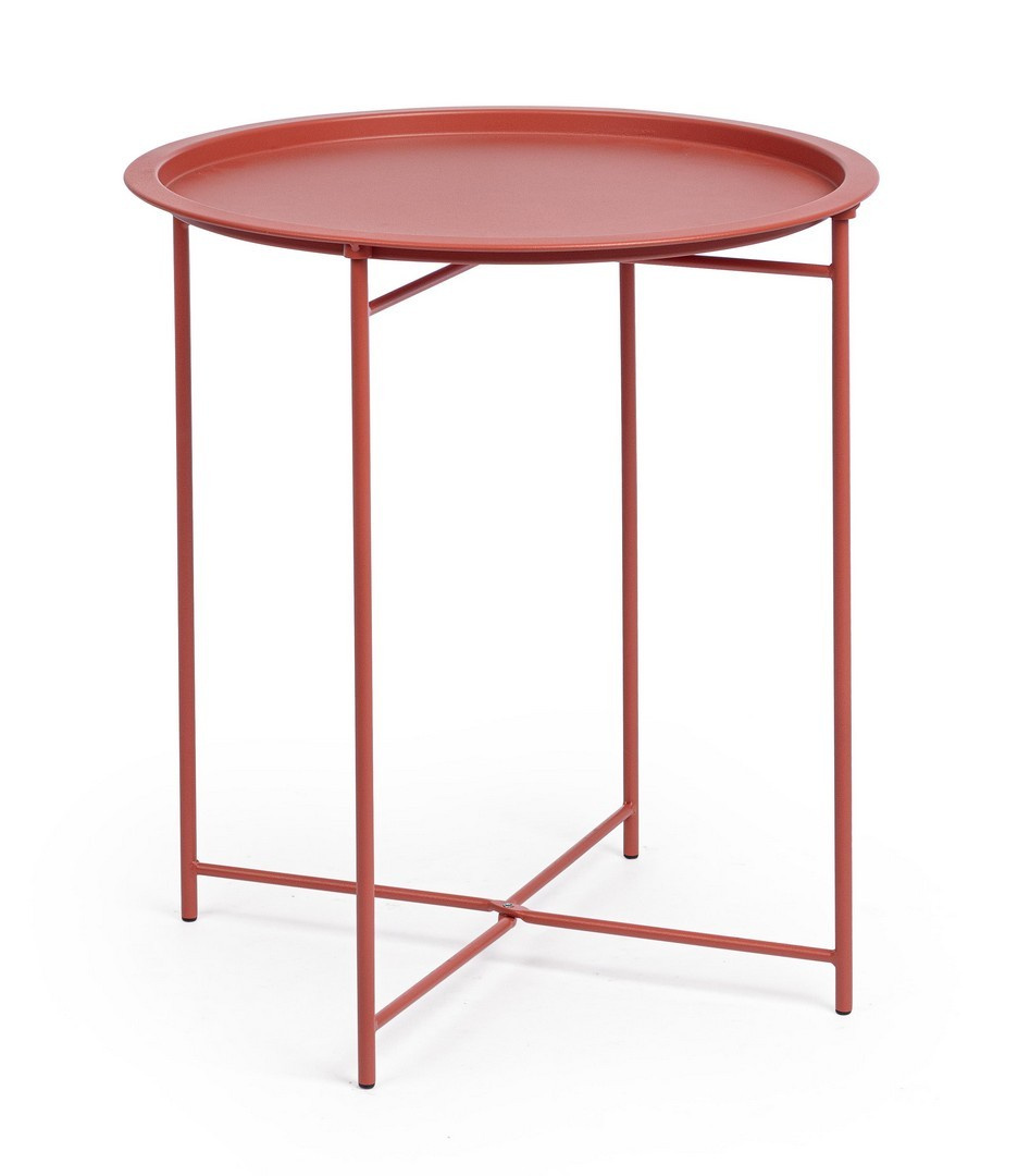 BIZZOTTO stolik ogrodowy AUSTIN czerwony. Elegancja w połączeniu z ponadczasowym wzornictwem - idealny stolik na balkon lub taras. Stal, z której jest wykonany, została specjalnie przygotowana do użytku na zewnątrz, a matowe wykończenie nadaje elegancki wygląd. Zaprojektowany z myślą o wygodzie, składana podstawa i zdejmowany blat pozwalają zaoszczędzić miejsce i ułatwiają przemieszczanie. Ciepły, ziemisty odcień czerwieni doskonale komponuje się ze stonowaną paletą barw, wprowadzając do wnętrza przytulny i harmonijny klimat. Austin łączy trwałość z wygodą, tworząc rozwiązanie idealne do codziennego użytkowania. Wymiary: wys. 52 cm / szer. 46 cm Waga brutto: 2,07 kg.