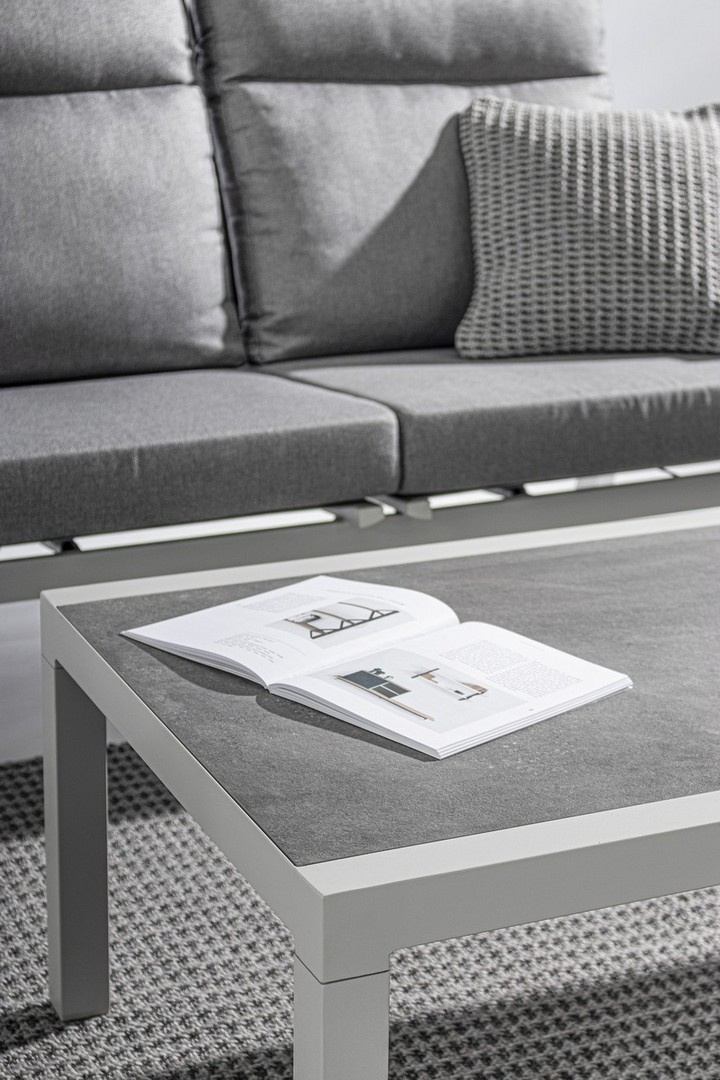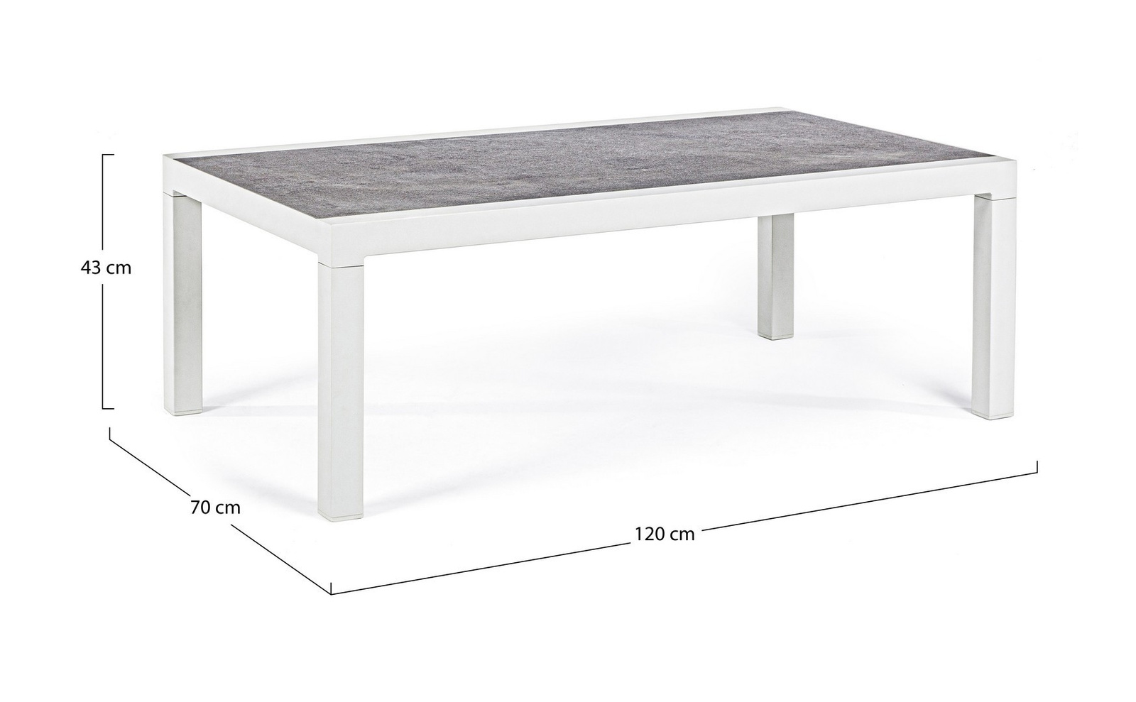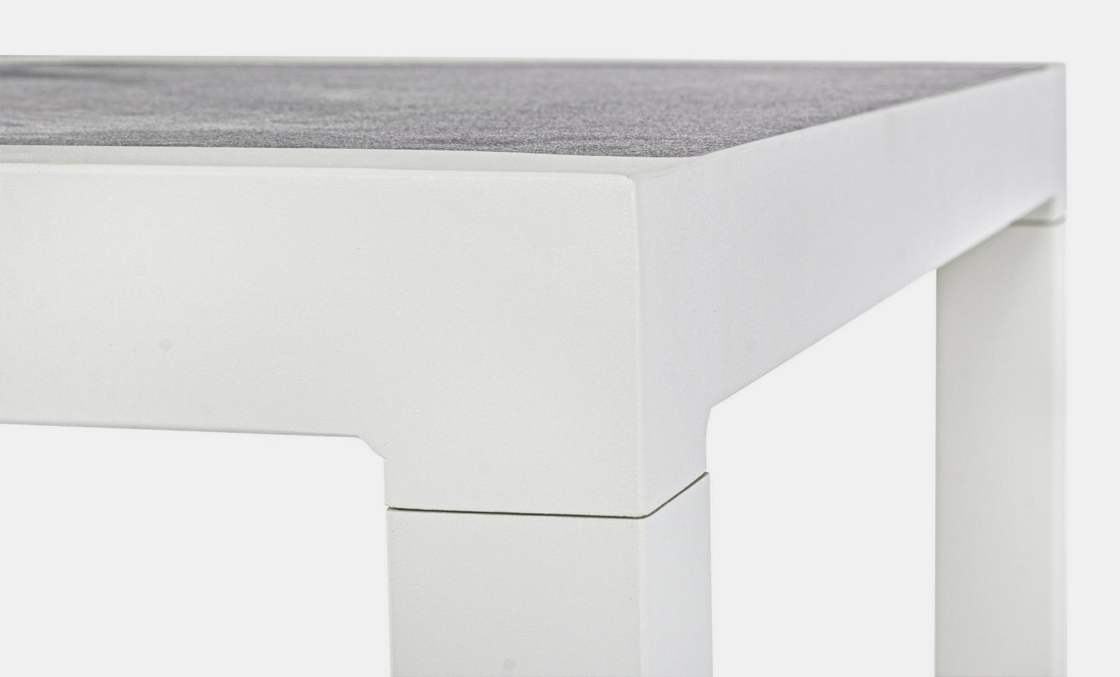 - BIZZOTTO stolik ogrodowy KLEDI biały / szary. Stylowy i funkcjonalny stolik ogrodowy, idealny do spotkań na świeżym powietrzu. Aluminiowa konstrukcja zapewnia wysoką trwałość oraz odporność na niekorzystne warunki pogodowe. Ceramiczny blat odporny na uszk