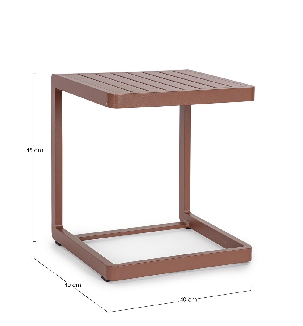 BIZZOTTO stolik ogrodowy KONNOR brązowy. Nowoczesny styl przeplata się tu z subtelną elegancją, łącząc komfort oraz praktyczność na co dzień. Aluminiowa konstrukcja zapewnia lekkość oraz odporność na korozję i czynniki zewnętrzne, co znacząco wpływa na żywotność produktu. Sprawdzi się w przestrzeniach użytkowych. Kolekcja Konnor to meble zaprojektowane z myślą o osobach, które cenią sobie nie tylko estetykę, ale i trwałość, to starannie dopracowana linia, łącząca szykowny wygląd z wysoką jakością wykonania i funkcjonalnością na najwyższym poziomie. Wymiary: wys. 45 cm / szer. 40 cm Waga brutto: 3,8 kg.