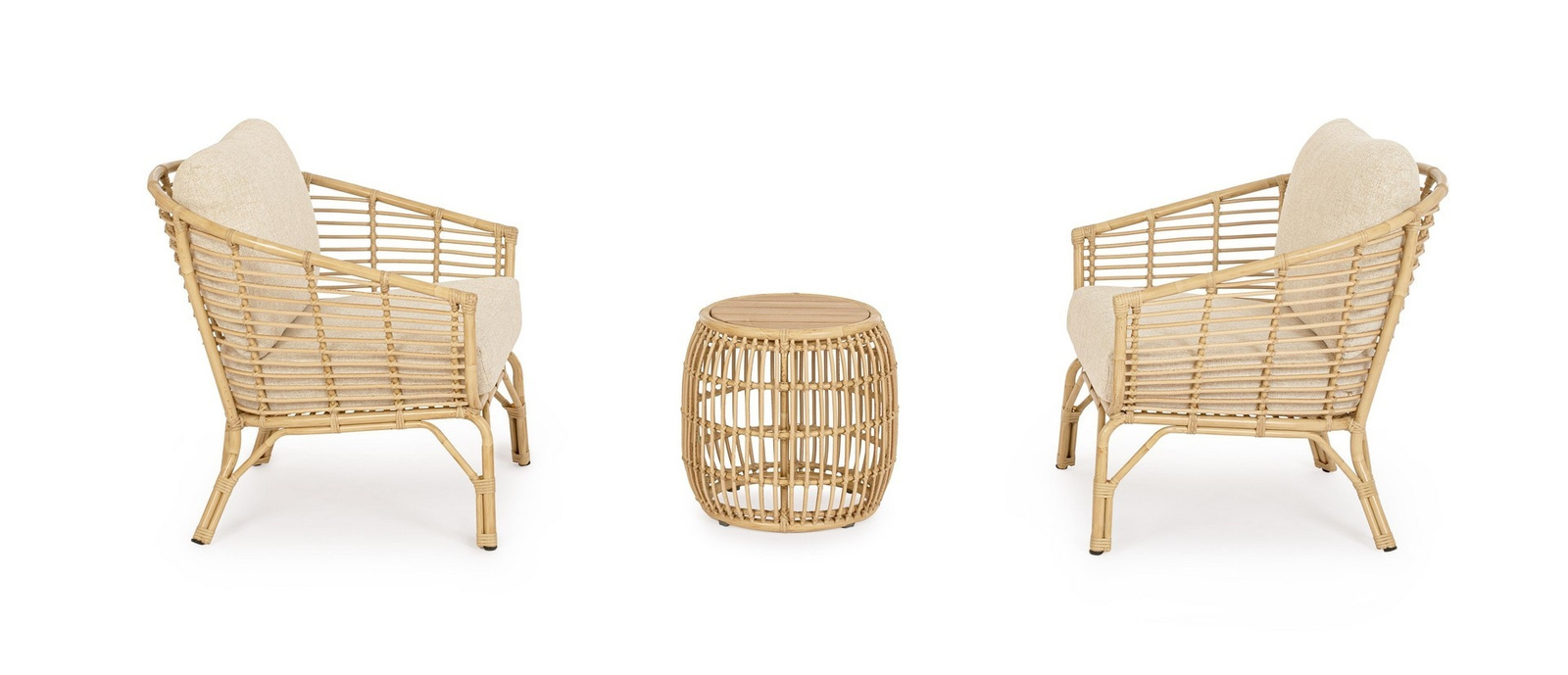 - BIZZOTTO stolik ogrodowy MABEL naturalny. Ponadczasowa klasyka i nowoczesny design, które razem tworzą harmonijną całość. Wykonana z aluminium rama stolika, imituje naturalny rattan dzięki zastosowaniu syntetycznych włókien, wprowadzając subtelną nowoczes