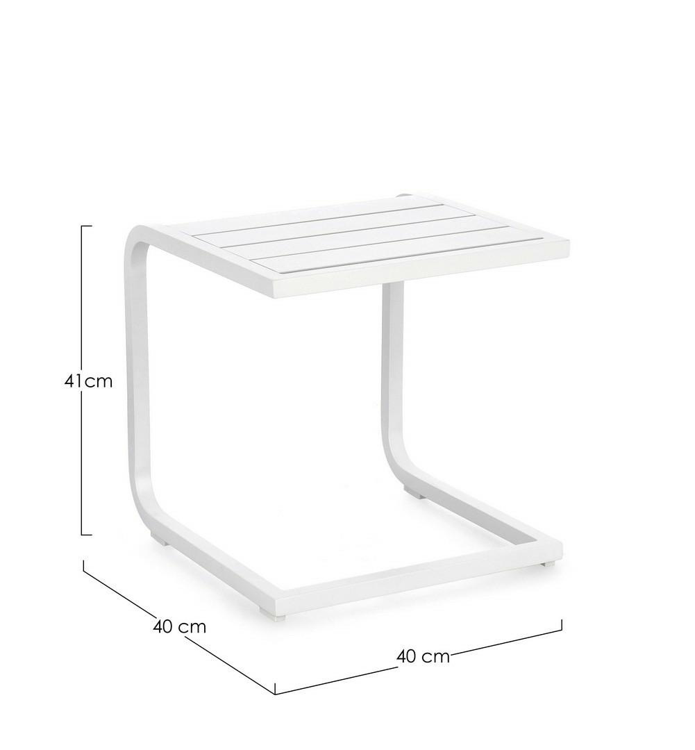 - BIZZOTTO stolik ogrodowy TAYLOR 40 biały. To wygodne i praktyczne rozwiązanie, które świetnie sprawdza się na co dzień. Konstrukcja z aluminium zapewnia lekkość i wytrzymałość, jednocześnie doskonale znosząc zmienne warunki pogodowe. Biały kolor komponuje