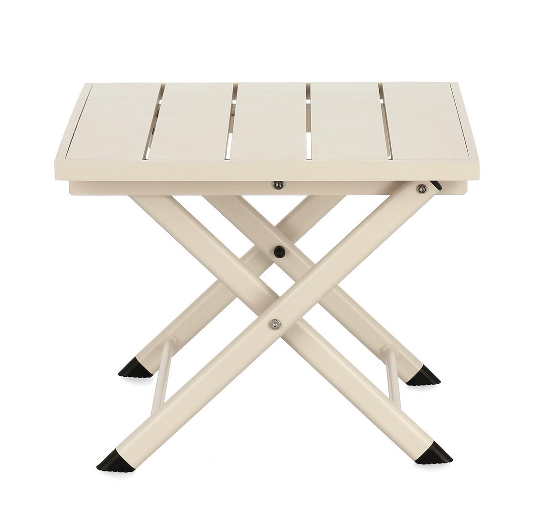 - BIZZOTTO stolik ogrodowy TAYLOR beżowy. To funkcjonalne i stylowe rozwiązanie, które doskonale odnajduje się w codziennej przestrzeni. Konstrukcja z aluminium zapewnia lekkość i wytrzymałość, jednocześnie doskonale znosząc zmienne warunki pogodowe. Dzięki