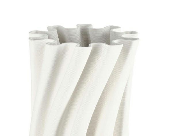 • BIZZOTTO wazon HAYLEE 31 biały. Ten model to coś więcej niż wazon, HAYLEE to stylowa forma, która odmieni przestrzeń. Zachwyca nieregularnym, płynnie falującym kształtem, który przywodzi na myśl formy rzeźbione przez wiatr lub wodę. Stworzony z ceramiki w