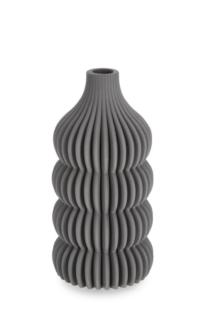 Wykonany z ceramiki w technologii druku 3D, wazon łączy płynną, organiczną linię z wyrazistą, segmentową sylwetką, nadając mu artystyczny charakter.