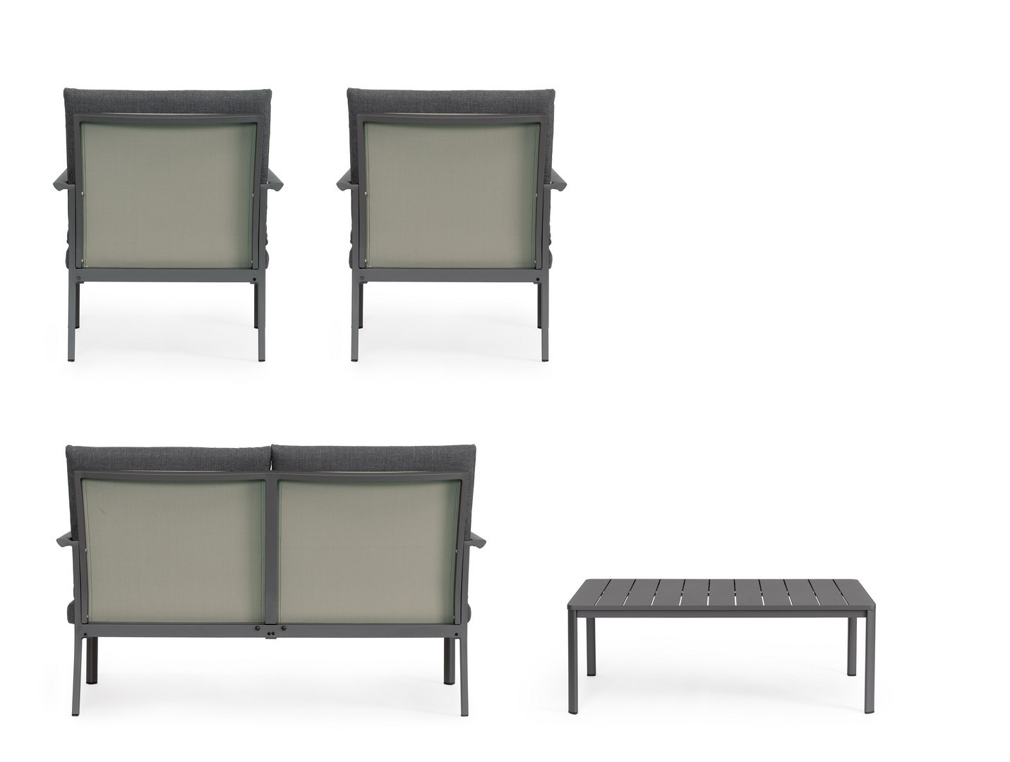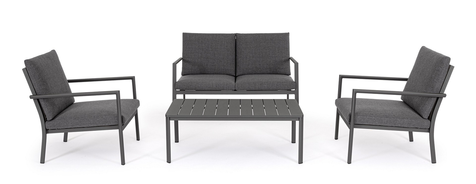 - BIZZOTTO zestaw ogrodowy KONNOR szary. Doskonałe zestawienie eleganckiego designu i codziennej wygody. Konnor to meble zaprojektowane z myślą o użytkowaniu na zewnątrz, ich aluminiowa konstrukcja łączy trwałość z estetyką. Siedzisko i oparcie zostały wyko