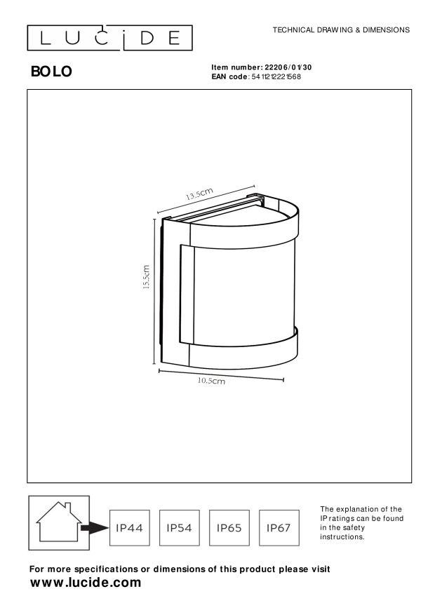 - BOLO Wall light Outd. - Opal - 1xE27 - 15W - IP44 - Szkło