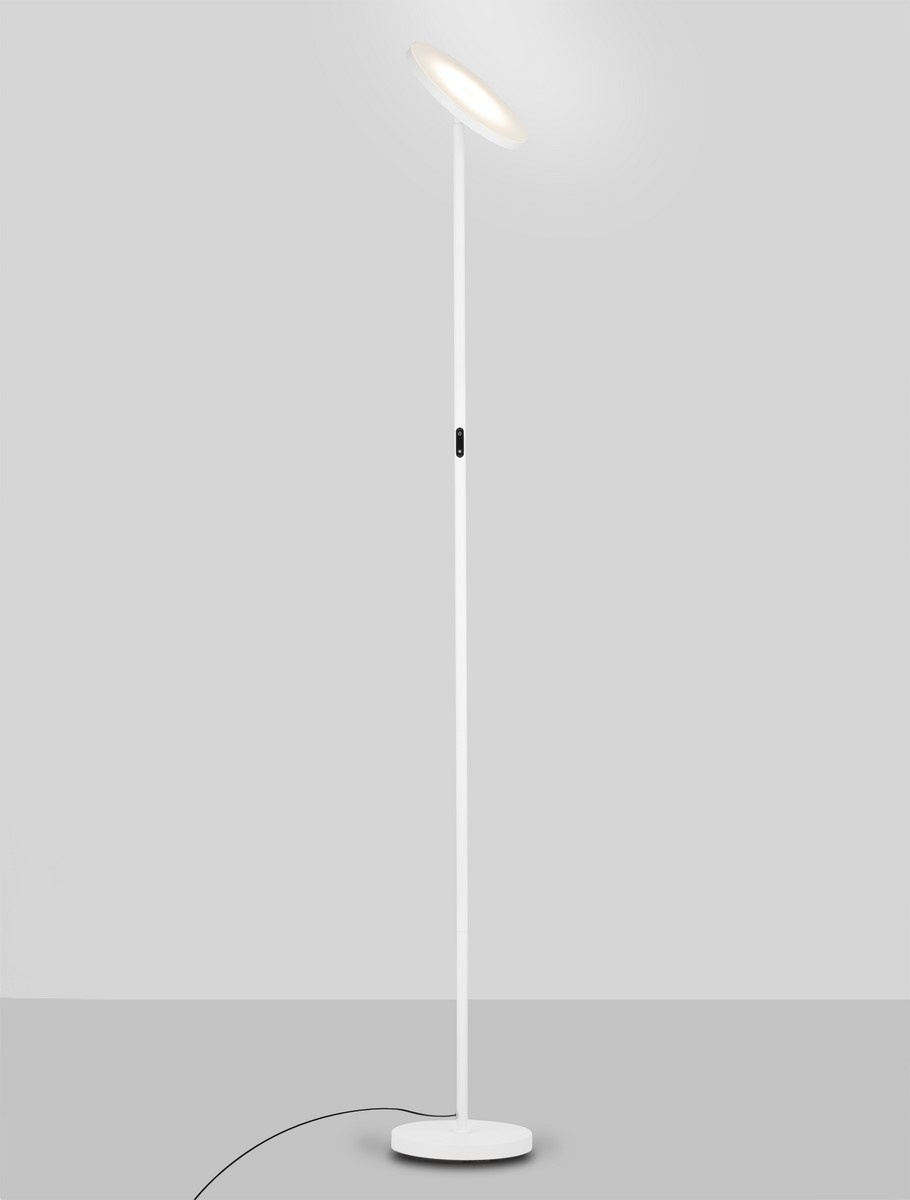 - Nowoczesna lampa podłogowa BUENA została stworzona ze stali i akrylu najwyższej jakości. Jej wysokość to 180 cm, a średnica jest równa 25,2 cm. Lampa w odcieniach bieli idealnie pasuje do salonu oraz sypialni. Oprawa zawiera wbudowane źródło światła o moc