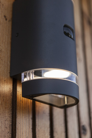 - Zewnętrzny kinkiet FOCUS przystosowany do żarówek LED GU10 LED. Posiada zintegrowany czujnik ruchu. Ustawienie czasu i zmierzchu jest regulowane ręcznie. Kolor ciemny szary.