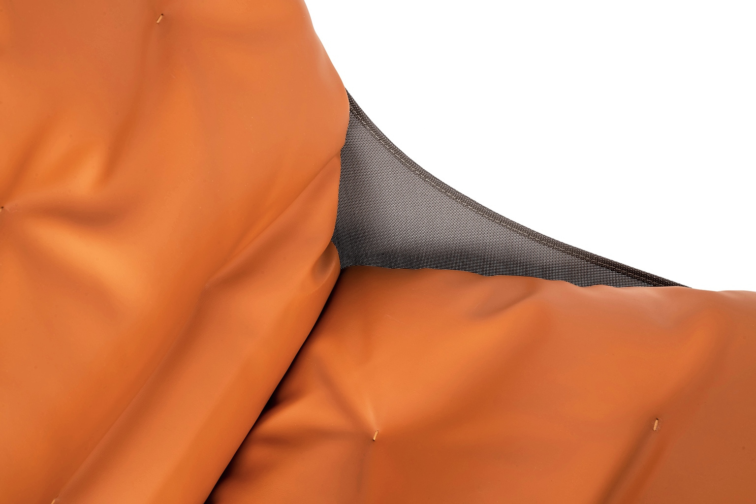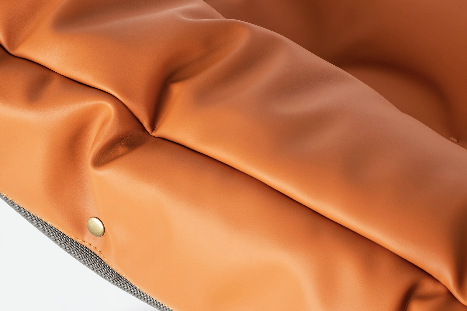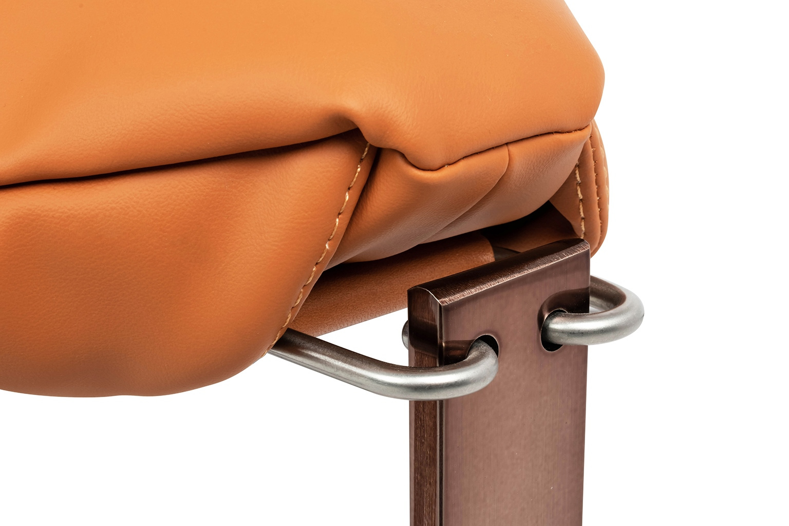 - Fotel ARNI LOW z podnóżkiem pomarańczowy - ekoskóra, miedz. Nowoczesna propozycja dla miłośników niebanalnych form i oryginalnych kształtów. Całość, osadzona na metalowym stelażu, przywodzi na myśl nowoczesny, designerski hamak, łącząc lekkość formy z wyj