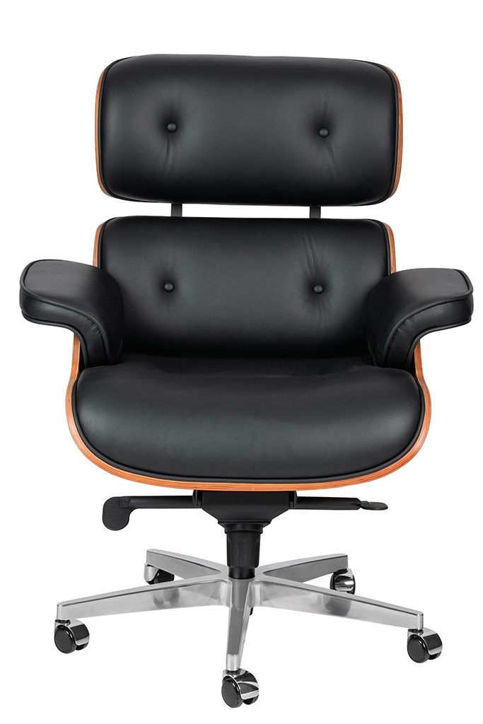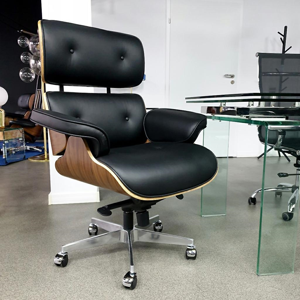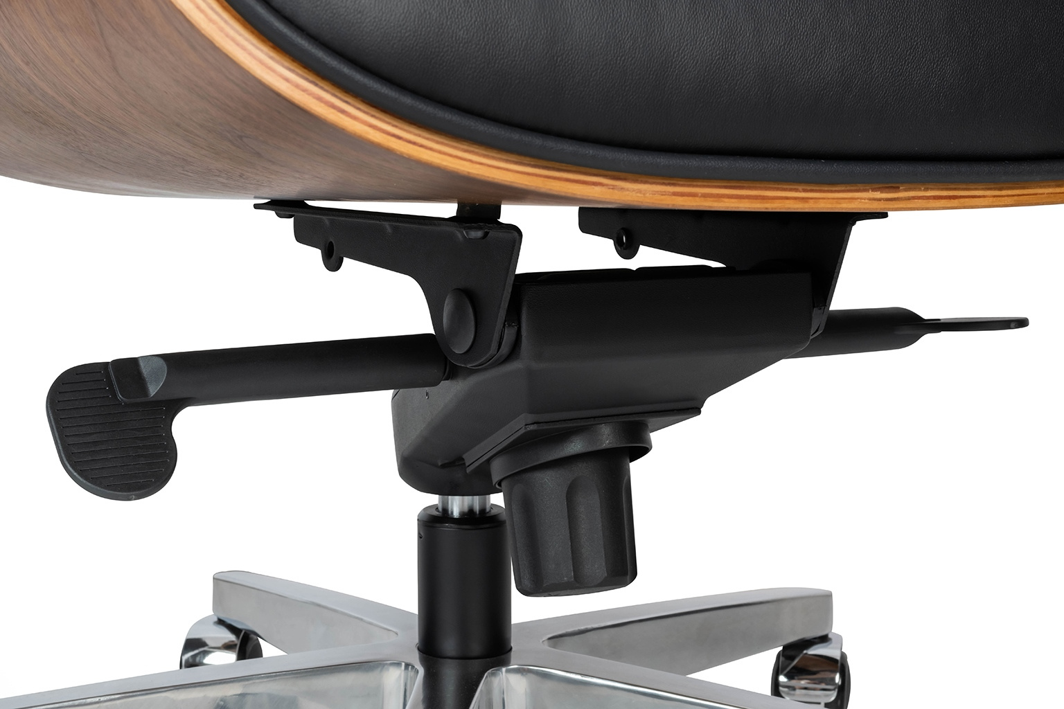 - Fotel biurowy Lounge Gubernator czarny z orzechowym drewnem. Siedzisko, oparcie oraz podłokietniki tapicerowane są naturalną włoską skórą w kolorze czarnym. Korpus fotela został wykonany z giętego na ciepło drewna w kolorze orzechowym Fotel wyposażony w r