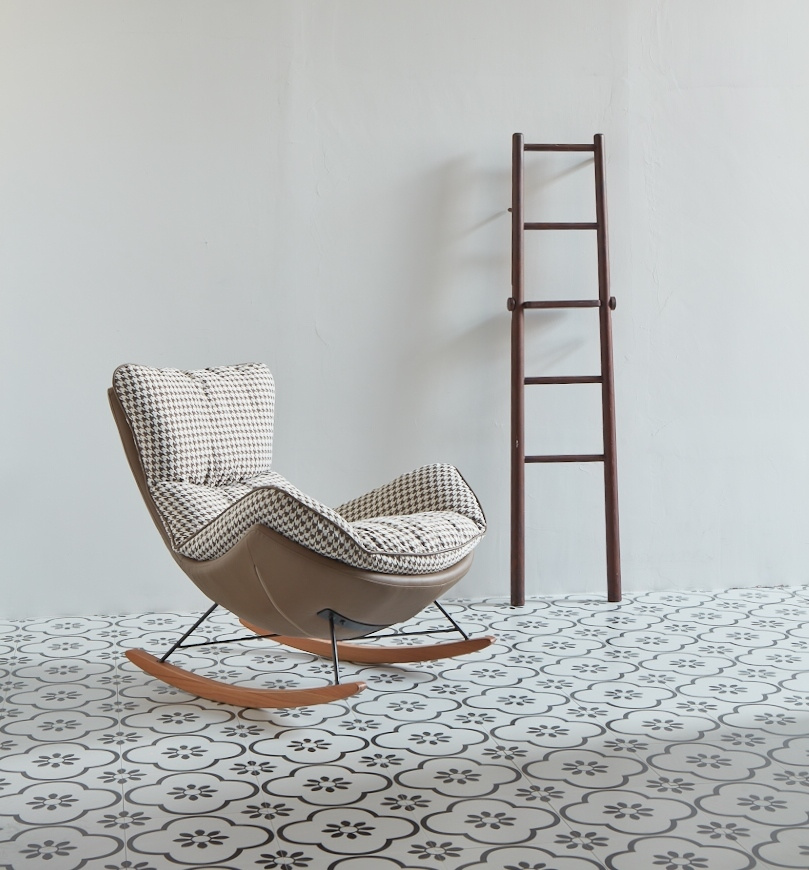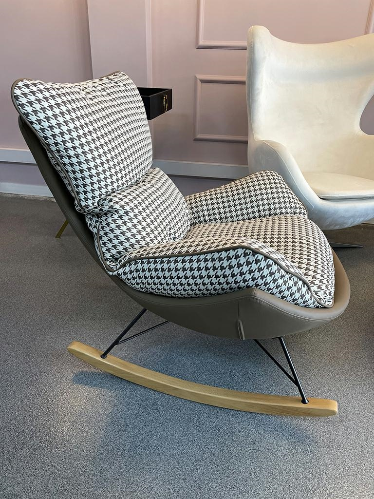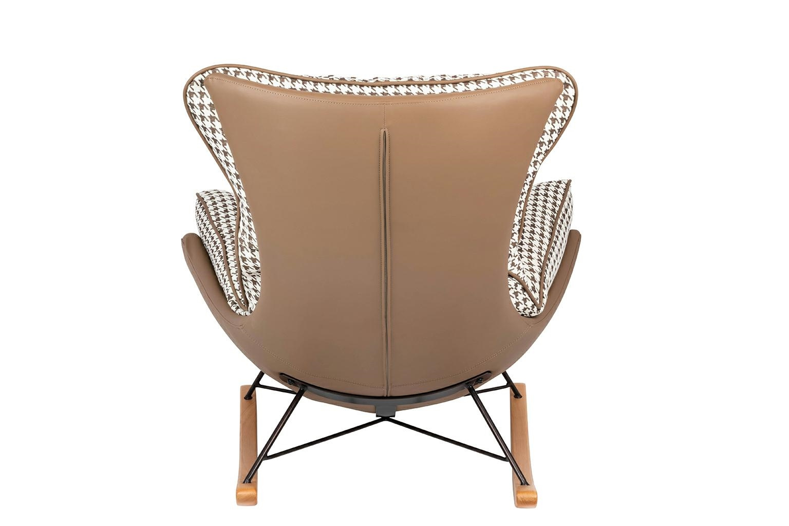 - Fotel bujany OTILIA. Korps tapicerowany ekoskórą w kolorze brązowym. Miękka poducha obszyta beżowo-brązową tkaniną w pepitkowym wzorze oprócz przytulnego designu cechuje się również niesamowitą wygodą. Drewniane płozy ocieplą każde wnętrze. Fotel Otilia ś
