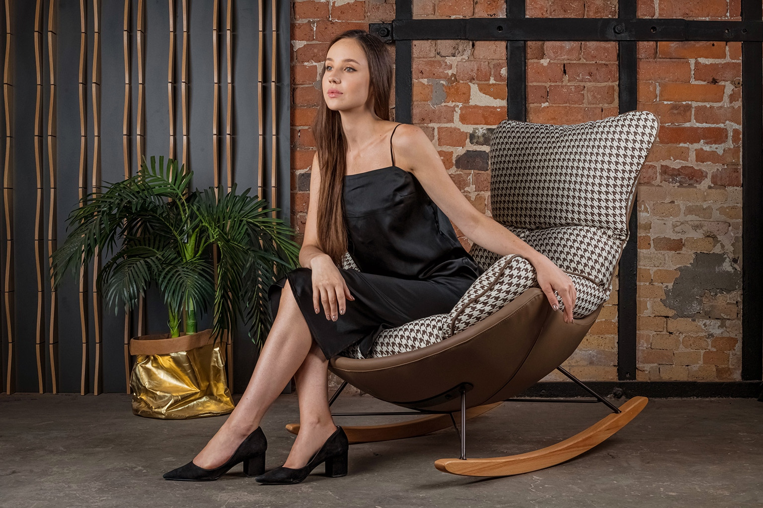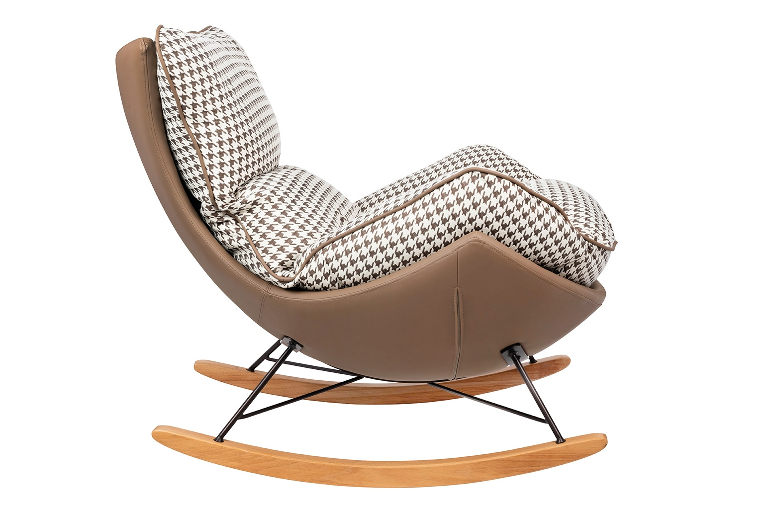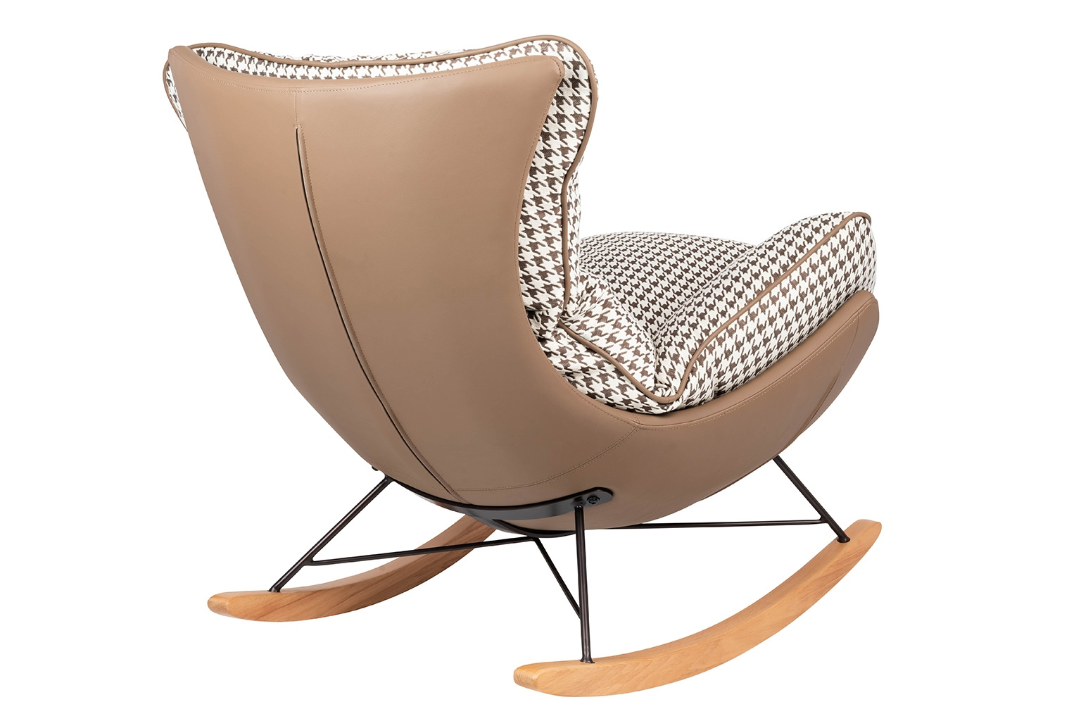 - Fotel bujany OTILIA. Korps tapicerowany ekoskórą w kolorze brązowym. Miękka poducha obszyta beżowo-brązową tkaniną w pepitkowym wzorze oprócz przytulnego designu cechuje się również niesamowitą wygodą. Drewniane płozy ocieplą każde wnętrze. Fotel Otilia ś